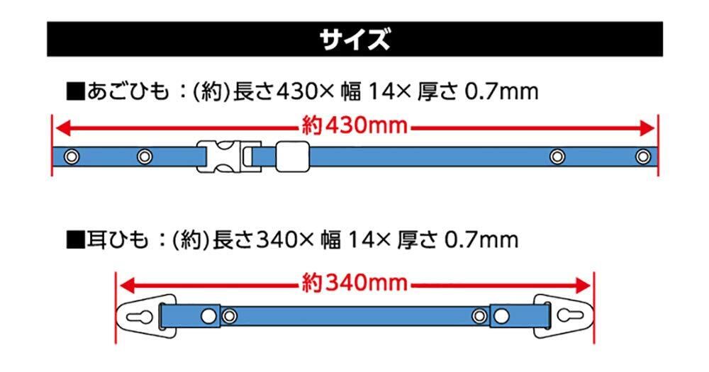 サイズ:あごひも(約)長さ430×幅14×厚さ0.7mm 耳ひも(約)長さ340×幅14×厚さ0.7mm