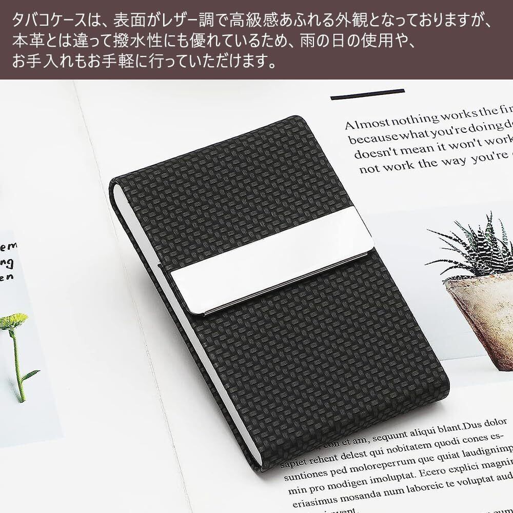 2.機能性に優れたタバコケース:タバコケースは、表面がレザー調で高級感あふれる外観となっておりますが、本革とは違って撥水性にも優れているため、雨の日の使用や、お手入れもお手軽に行っていただけます。
