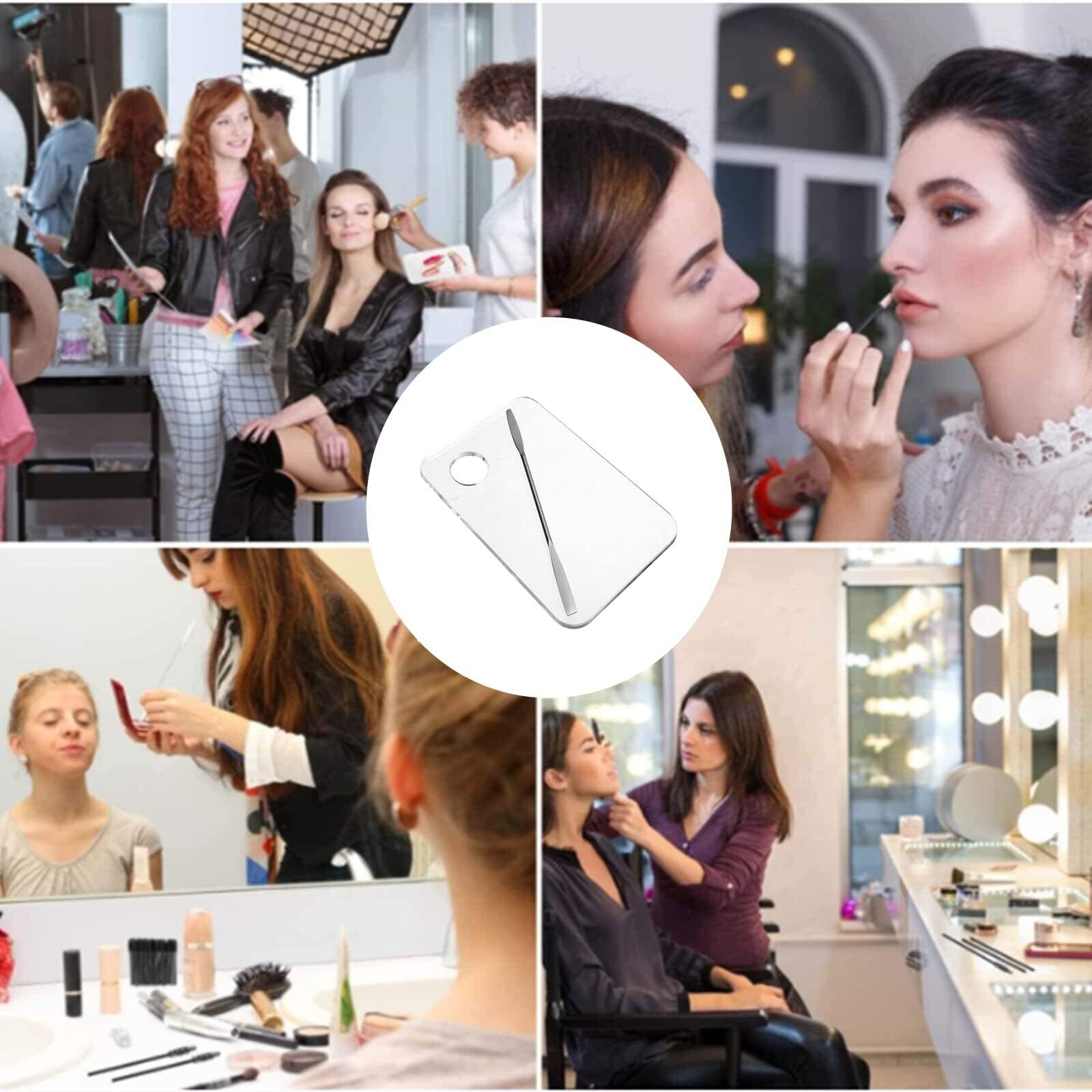 【2つの異なるエッジ】アクリルミキシングパレットには、スパチュラの2つの異なるエッジがあり、クリームをすくい取るための掛け算の使用法と、化粧品のブレンドが手軽に行えます。