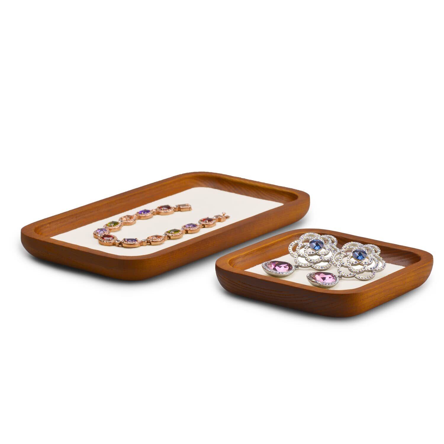 Woodten 木製ジュエリートレイ、ジュエリー展示トレー、スタッカブルジュエリートレイ、指輪 イヤリングトレイ (中くらい, オフホワイト)