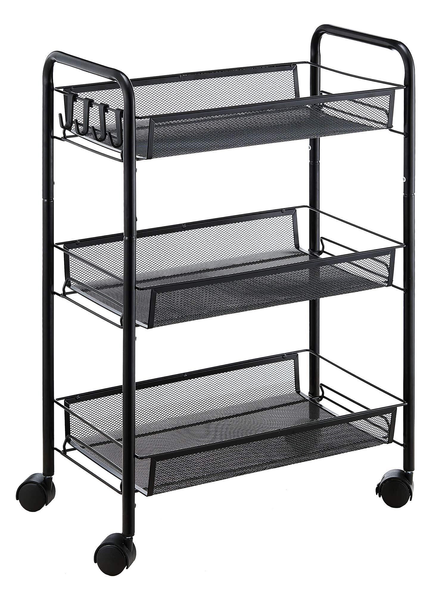 EKNITEY メタルラック キッチンワゴン メタル メッシュ キッチン カート 防錆 小物収納 サイドワゴン 3段 幅26.5×奥行45.5×高さ63.5cm ブラック