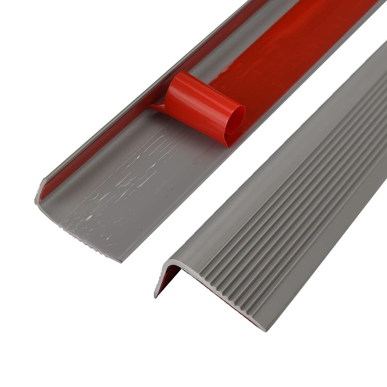L型 高密度ゴム製で 滑り止めテープ 階段マット すべり止め付 階段すべり止め 屋外 屋内 転倒防止 グレー 1Mx1本