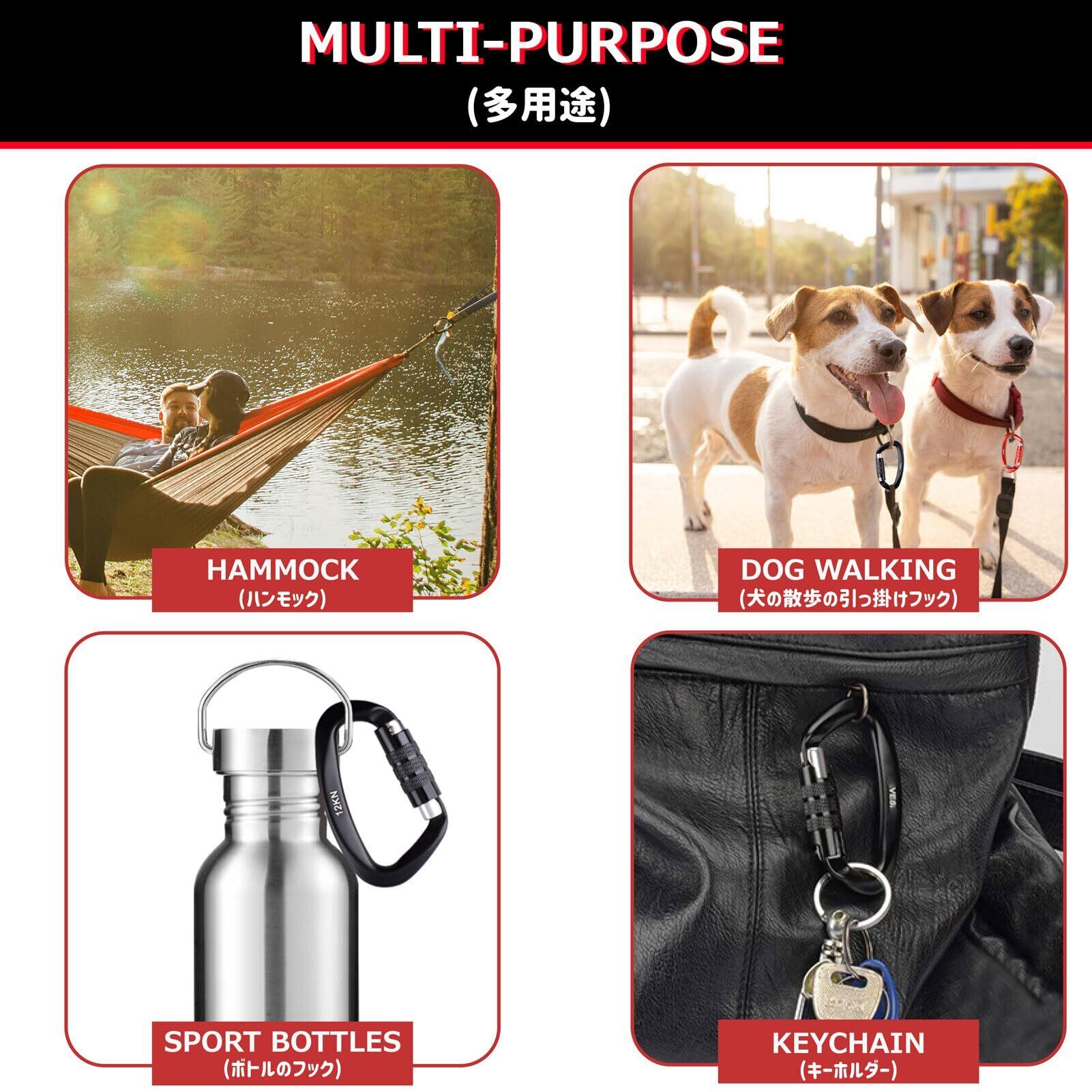 Azarxis カラビナ ロックカラビナ オートロック アルミ 耐荷重12KN 登山釦 Dリング ロッキング キーリング 脱落防止 超軽量 多機能 ハンモック キャンプ アウトドア | BASE SHOP