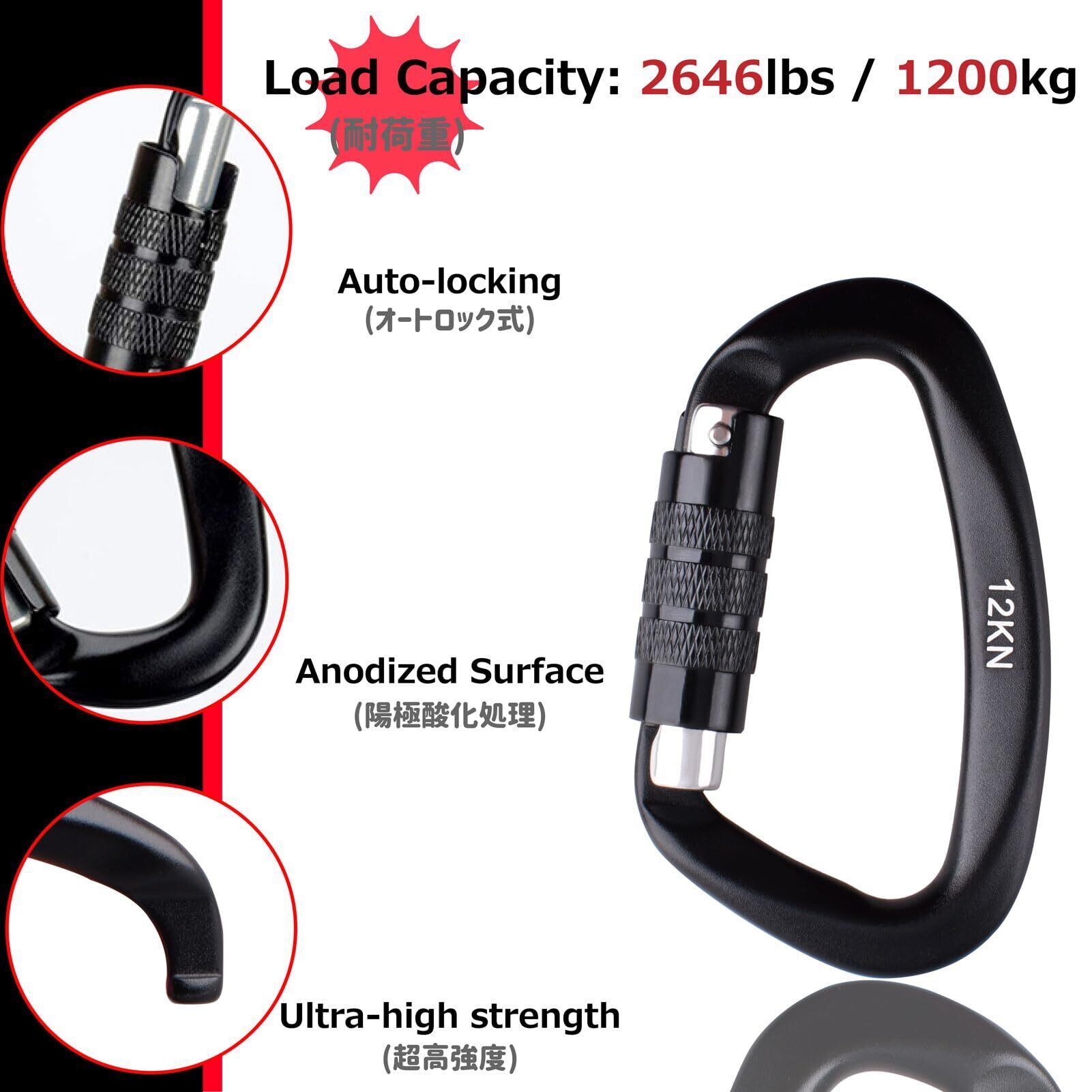 Azarxis カラビナ ロックカラビナ オートロック アルミ 耐荷重12KN 登山釦 Dリング ロッキング キーリング 脱落防止 超軽量 多機能 ハンモック キャンプ アウトドア