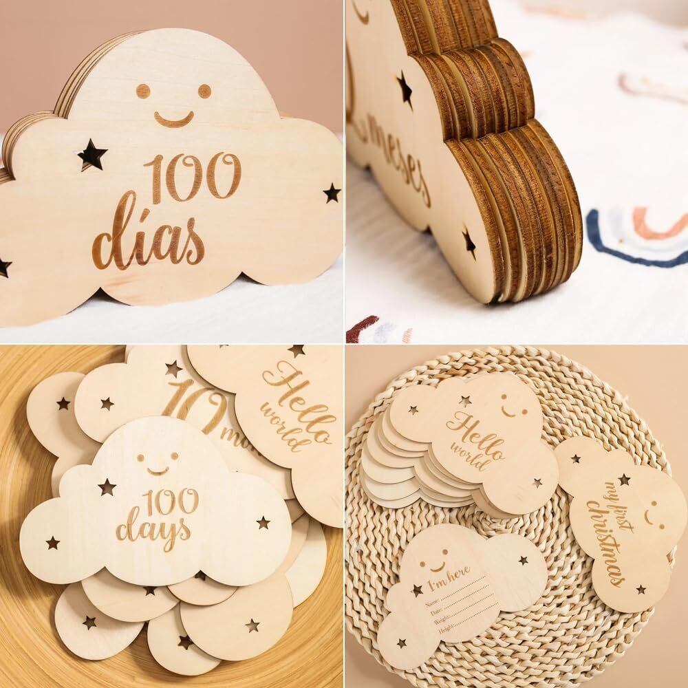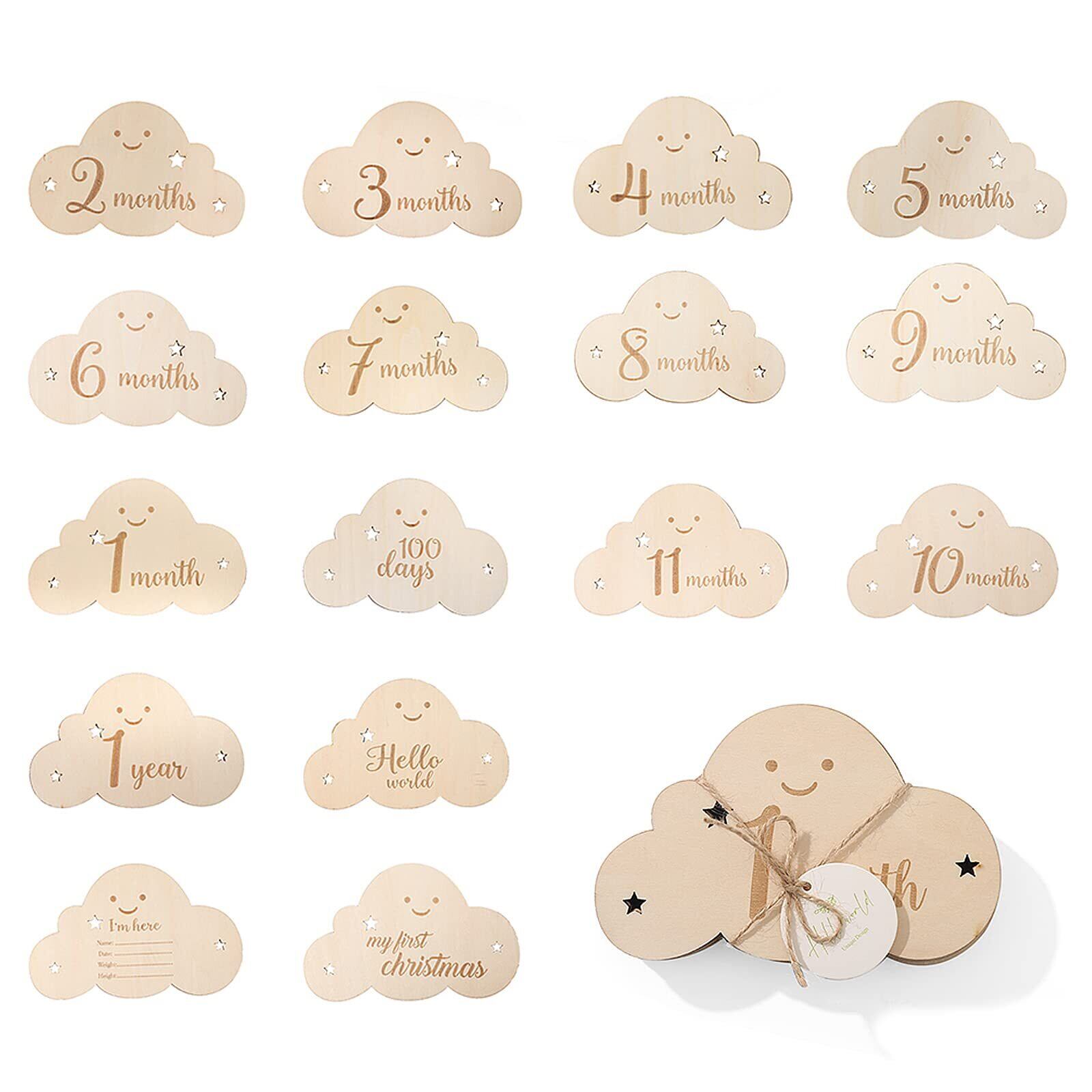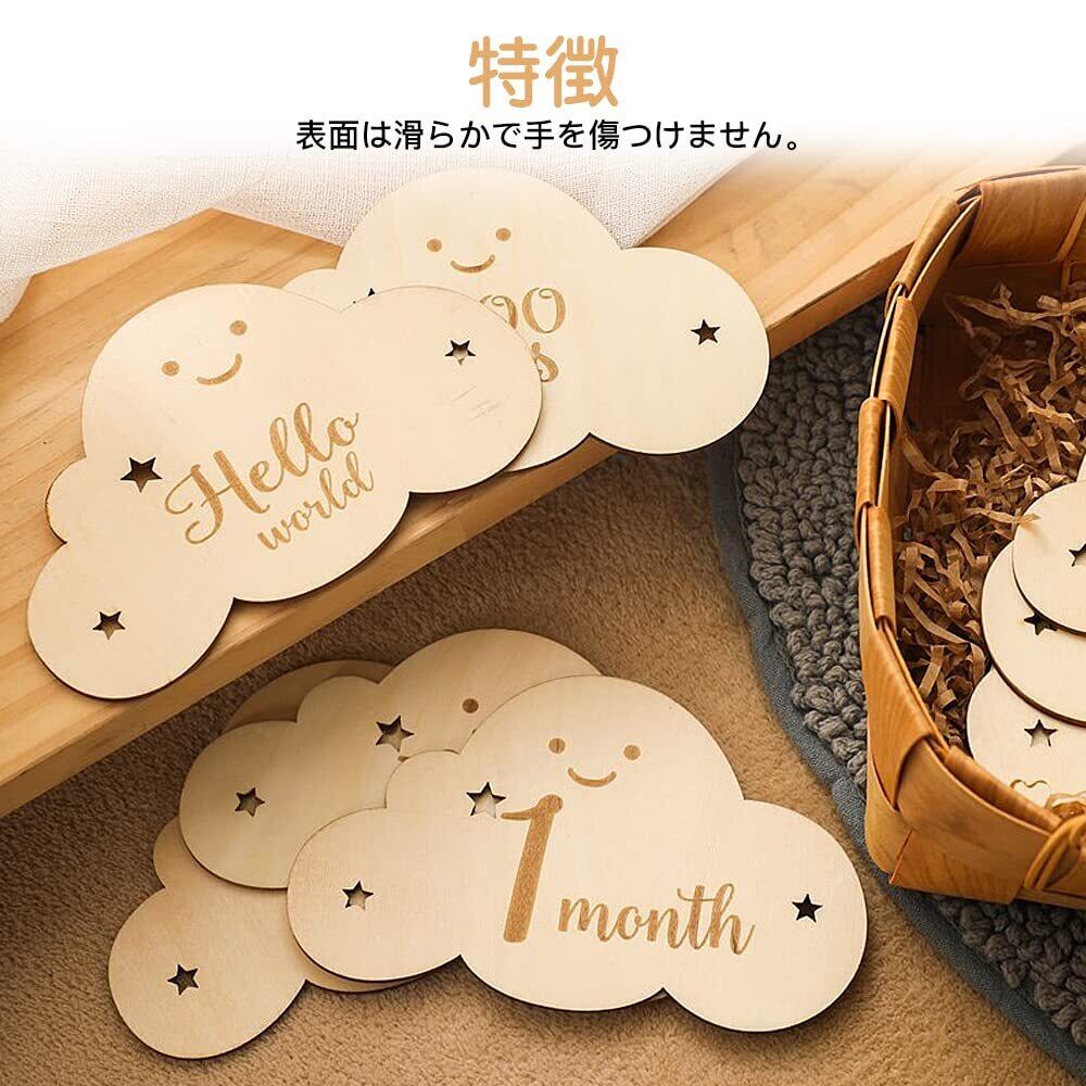 サムコス 雲形 ウッド 8枚セット 月齢カード 収納袋付き 写真道具 ニューボーンフォト 月齢フォト ベビーマンスリーカッド 記念日フォト 出産祝い 赤ちゃん 新生児 成長記録 撮影道具 (B) | BASE SHOP
