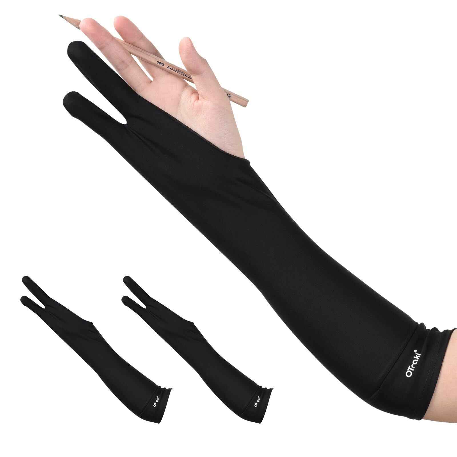 [OTraki] お絵描き手袋 長袖タイプ 2枚入 黒 お絵描き ipad 絵の初心者用 タブレット用手袋 10.5x42cm 防汗 左右兼用 2本指グローブ 全面保護肘 お絵描き 汚れ防止 for ipad paint gloves ブラック