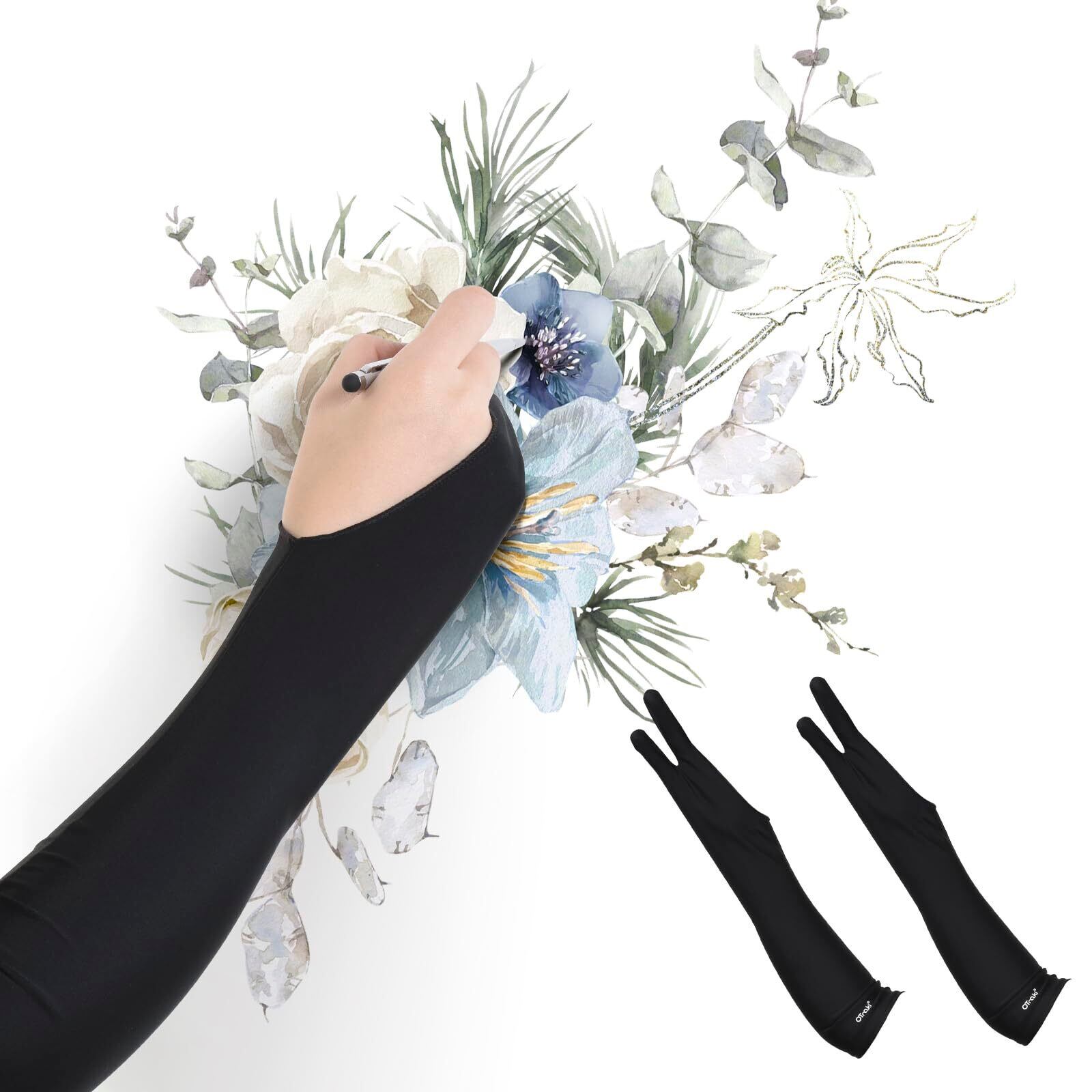 [OTraki] お絵描き手袋 長袖タイプ 2枚入 黒 お絵描き ipad 絵の初心者用 タブレット用手袋 10.5x42cm 防汗 左右兼用 2本指グローブ 全面保護肘 お絵描き 汚れ防止 for ipad paint gloves ブラック | BASE SHOP
