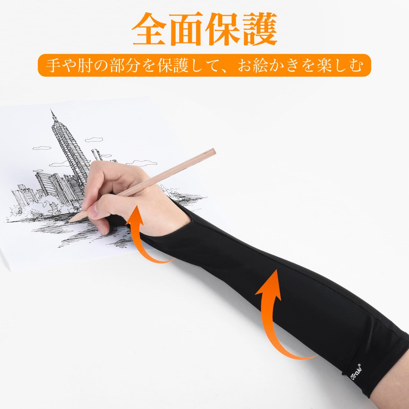 【全面保護】長袖タイプのお絵描きグローブはショートタイプに比べてアーム上の部分の汚れや誤った取り扱いを防ぎつつ、描画中のスムーズな操作を楽しむことができます。ご注意:フリ—サイズではなくMサイズとなりますので、ご購入前にサイズをご確認ください。