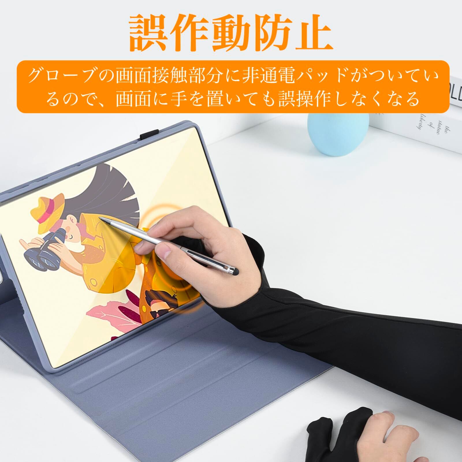 【誤作動防止】ペンタブレット・ラトレースライトパッド・グラフィックスモニターに誤動作防止のため、スケッチ、スムーズな描画ができるようになる二本指グローブです。タッチペンやスタイラスでタブレットに絵を描く際の手と画面との摩擦を軽減し、よりスムーズな描画を可能にします。