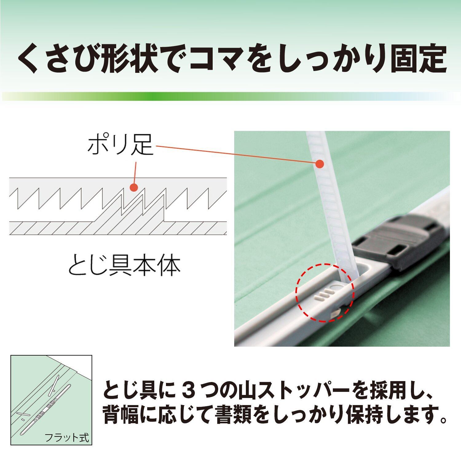 とじ具に3つ山ストッパーを採用し、背幅に応じて書類をしっかり保持します。