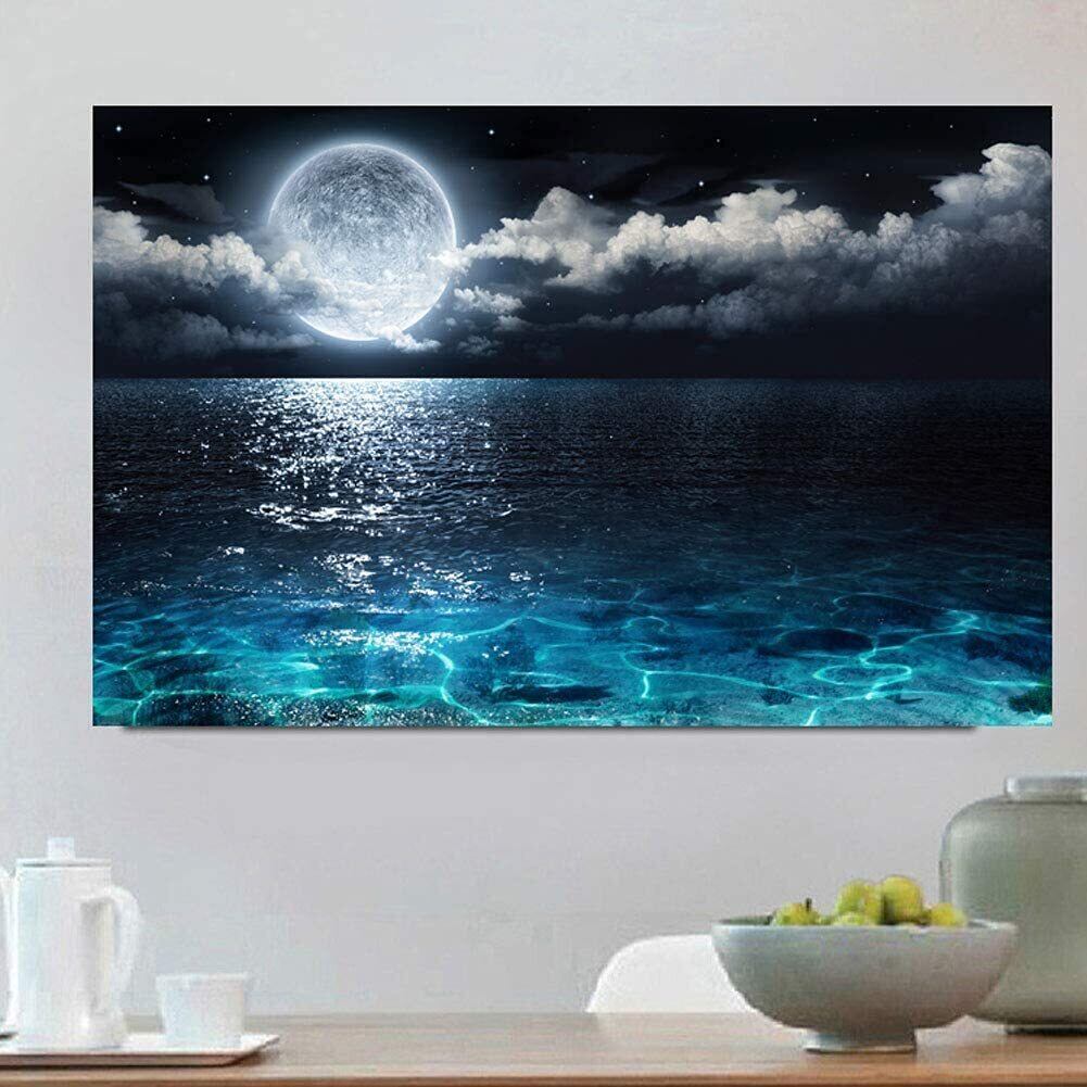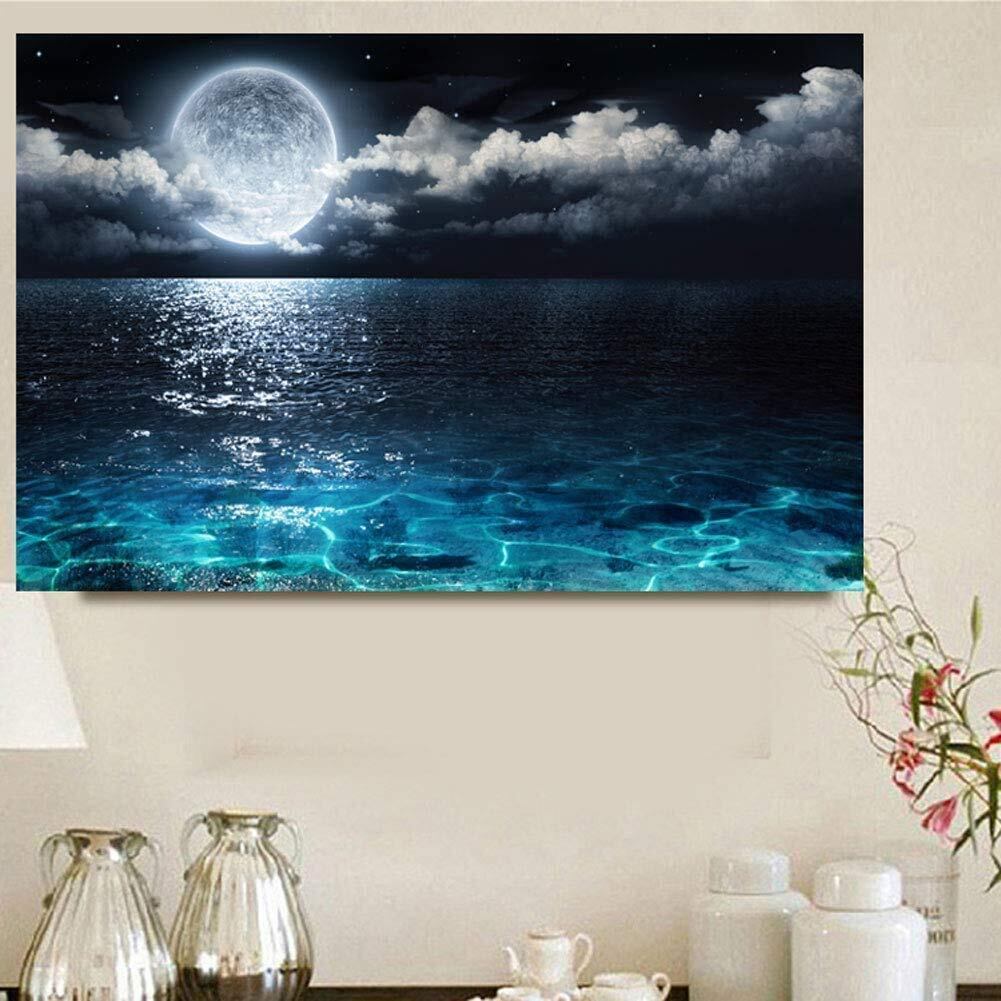 ダイヤモンド絵画5Dダイヤモンド刺繡セット手作り工芸品壁装飾減圧パズルダイヤモンドパズルクロスステッチアート家の装飾(海と月)30x40 cm