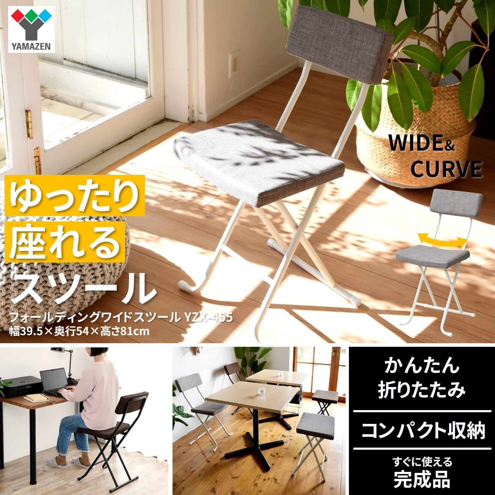 山善(YAMAZEN) 折りたたみ椅子 (ワイド) 背もたれ付き チェア パイプ椅子 幅39.5×奥行54×高さ81cm 完成品 グレー YZX-455(GY/WH)