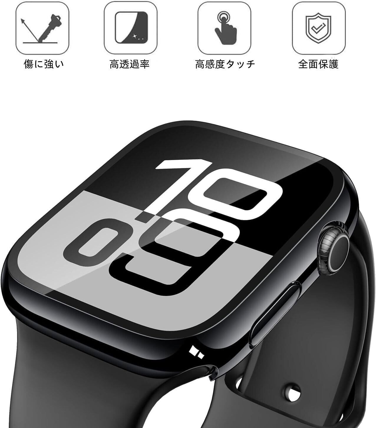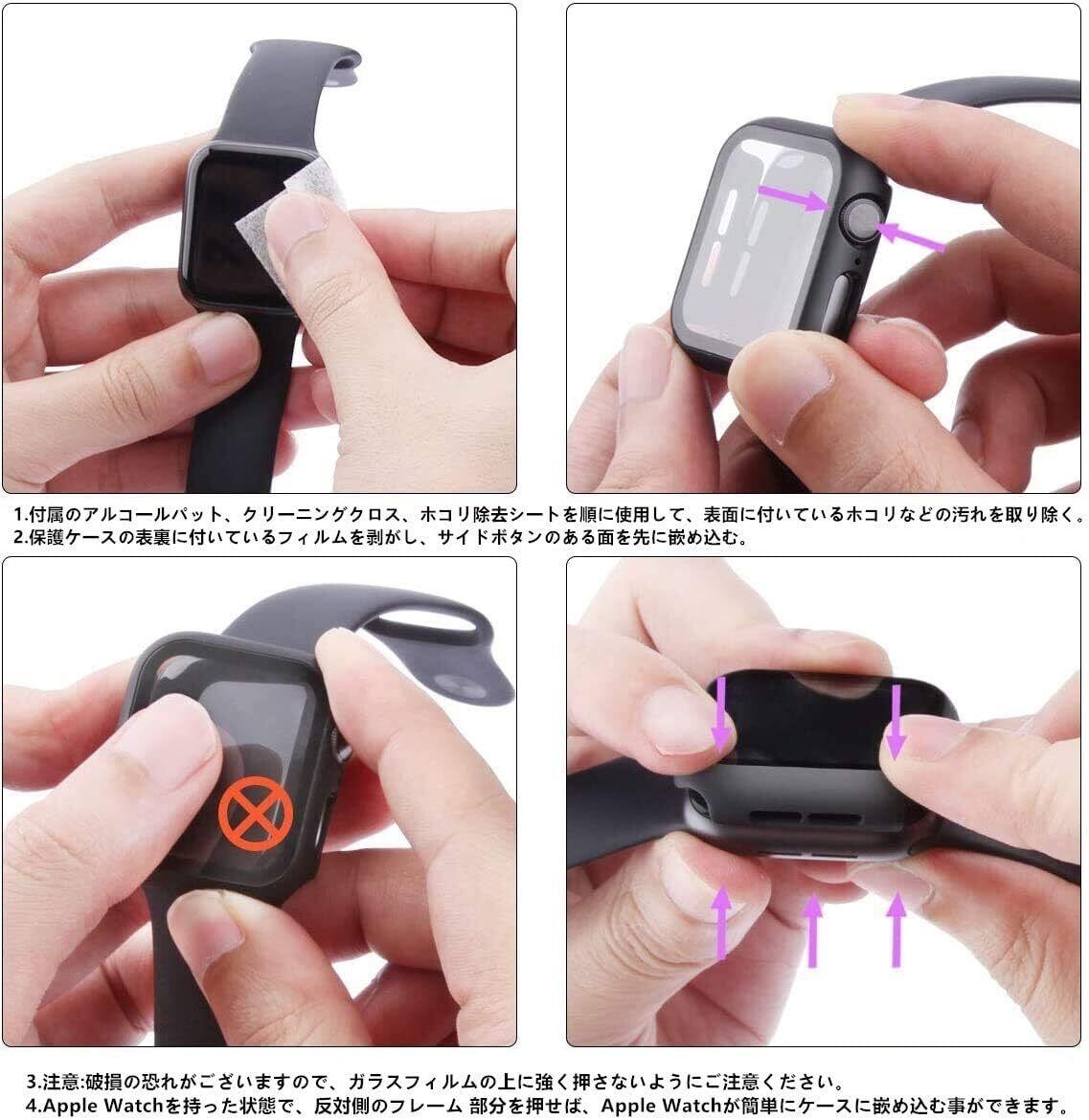 【装着が簡単】 Apple Watchガラスフィルム+保護カバーの融合された革新的な一体型デザイン。取付け道具不要、本体の上から嵌めるだけで楽に装着できます。従来のフィルム貼りの手間も省けます。※ご注意:ウォッチの画面とカバーの間に水が浸入する場合、保護カバーを取り外し、柔らかい布で水を乾かしてください。