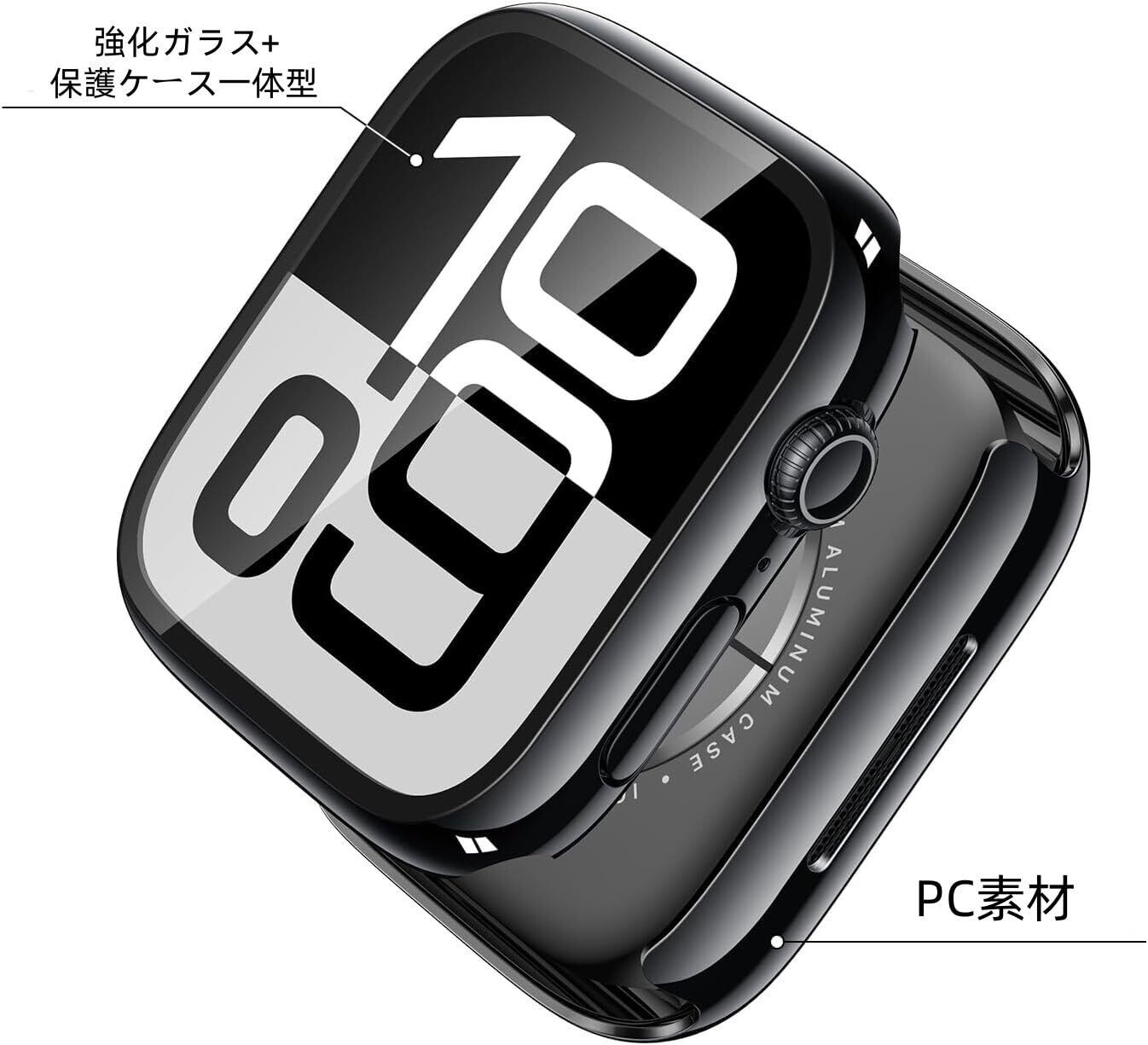 ULOE For Apple Watch Series 10 46mm ケース, 超薄型 PC+ガラス素材 全面保護 高透過率 装着簡単 耐衝撃 指紋防止 傷防止 対応アップルウォッチ 10 46mmカバー(ジェット・ブラック) | BASE SHOP