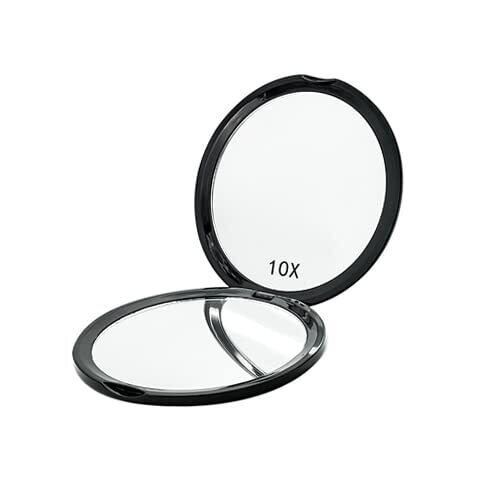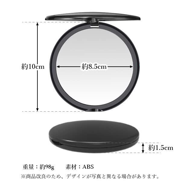 コンパクトミラー 10倍 拡大鏡 メイク 両面 2WAY 手鏡 折りたたみ 卓上 化粧 鏡 丸型 ブラック