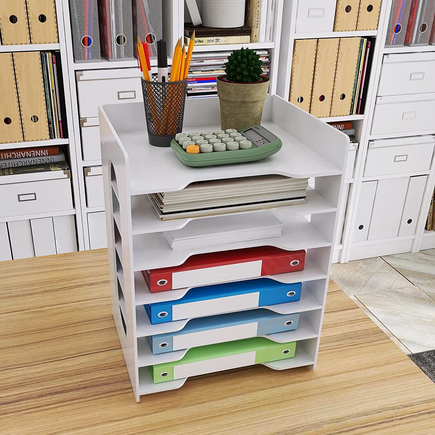 PUNCIA 書類ケース 横型 7段 レターケース A4 卓上整理 書類棚 新聞/雑誌/フォルダー/書類 収納 ファイルラック 机上 置く棚 組み立て式 書類トレー ホーム/オフィス デスク収納 書類整理 事務用品 (7仕切り)