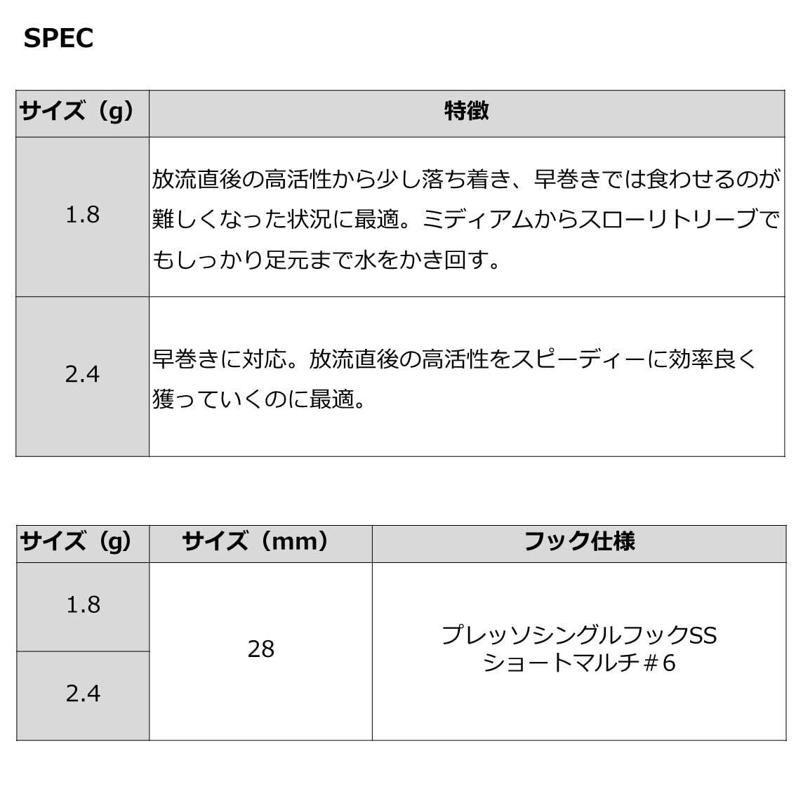 放流直後の高活性から少し落ち着き、早巻きでは食わせるのが難しくなった状況に最適。ミディアムからスローリトリーブでもしっかり足元まで水をかき回す。