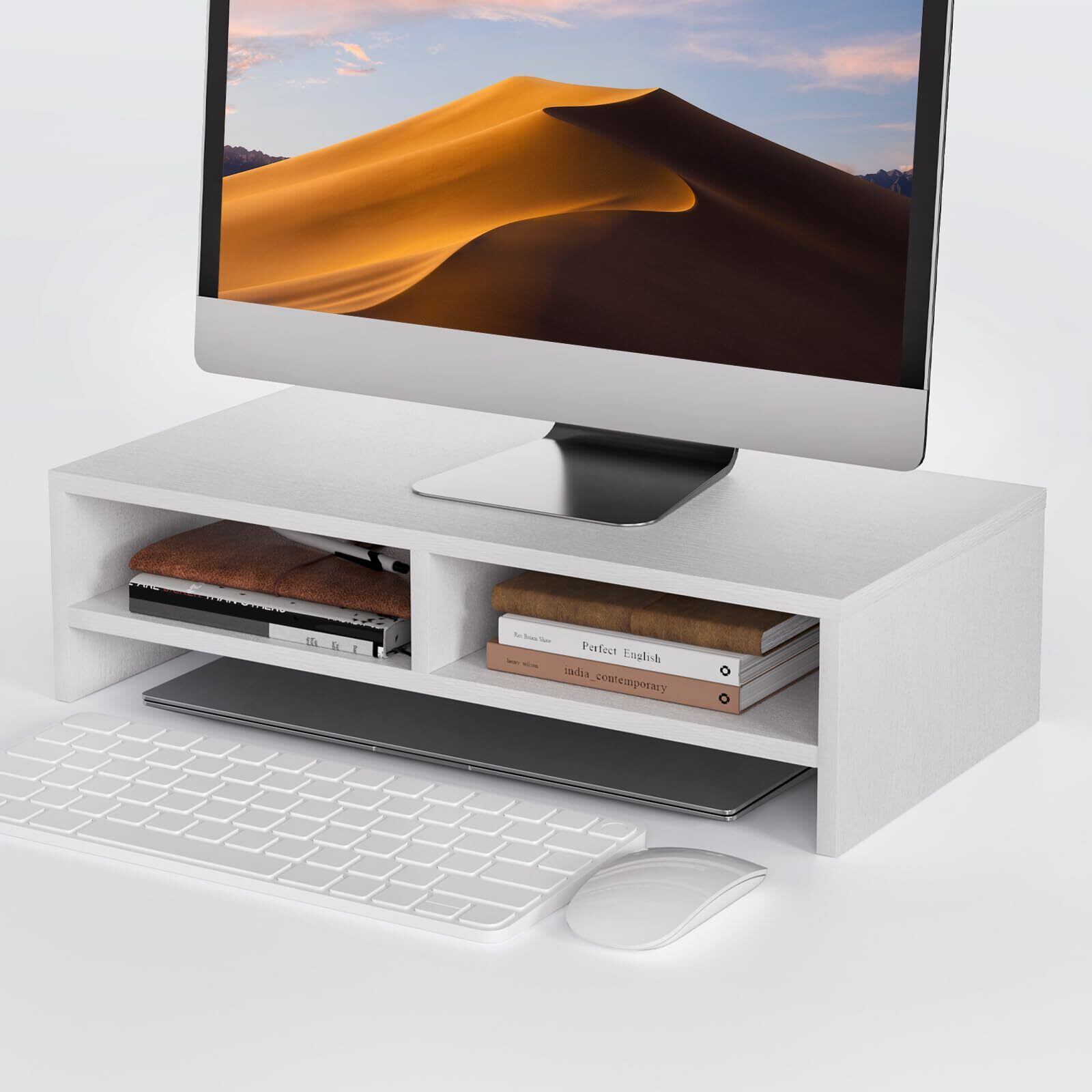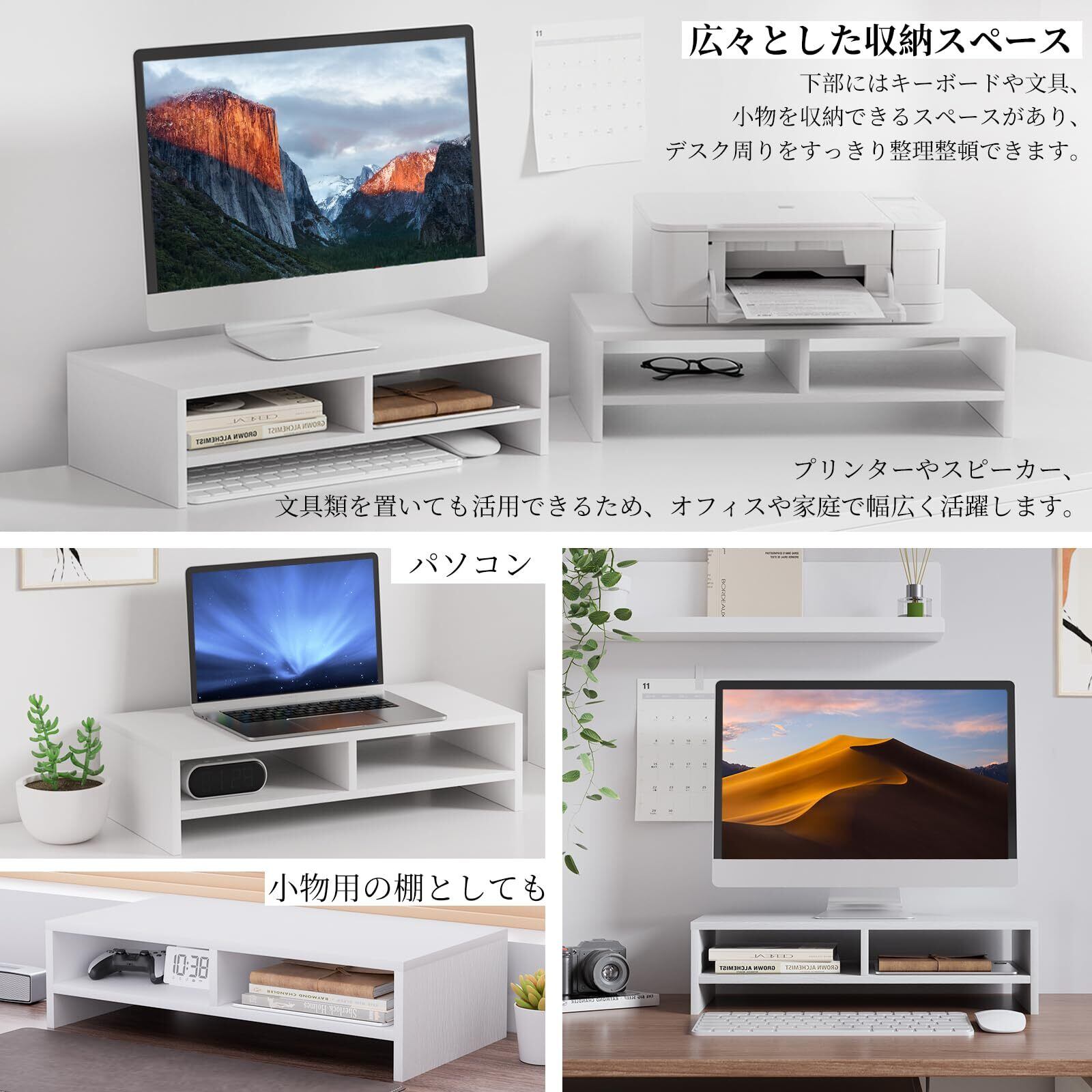 【省スペース&多機能】モニター台は様々な場合に大活躍!本棚やプリンター台/fax台などとしても便利です。キーボードやマウスを収納するには役に立ちます。多機能な机上台で、オフィスや研究室やリビングルームなどの場合もオススメです。画像や鉢植えなどお好きなものを飾れば、自分だけの癒し空間がつくれます。疲れが吹き飛んで作業率もアップさせる。