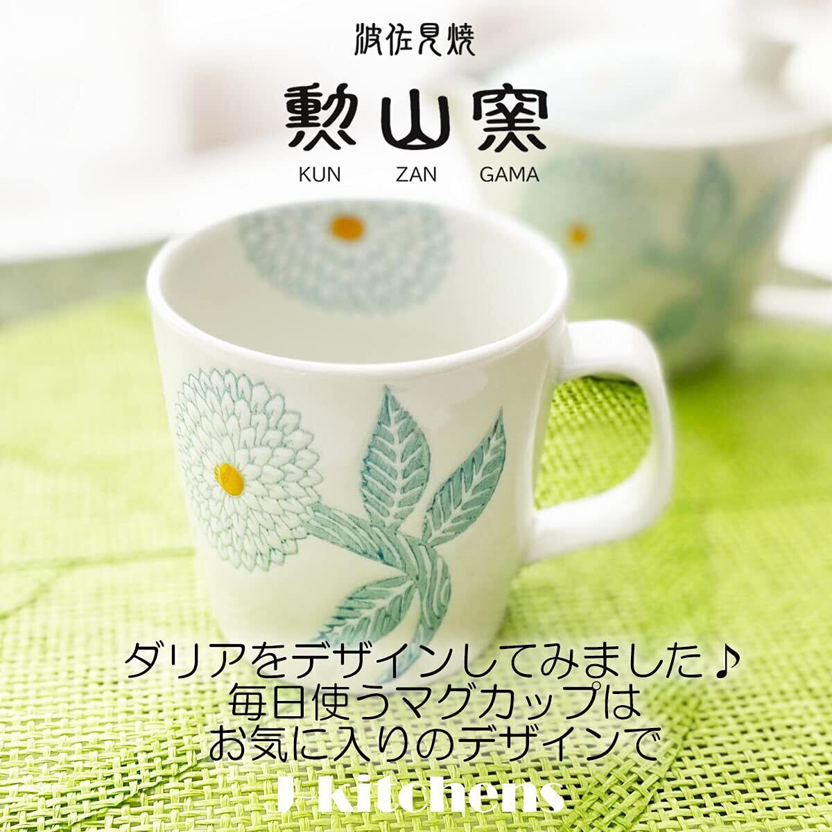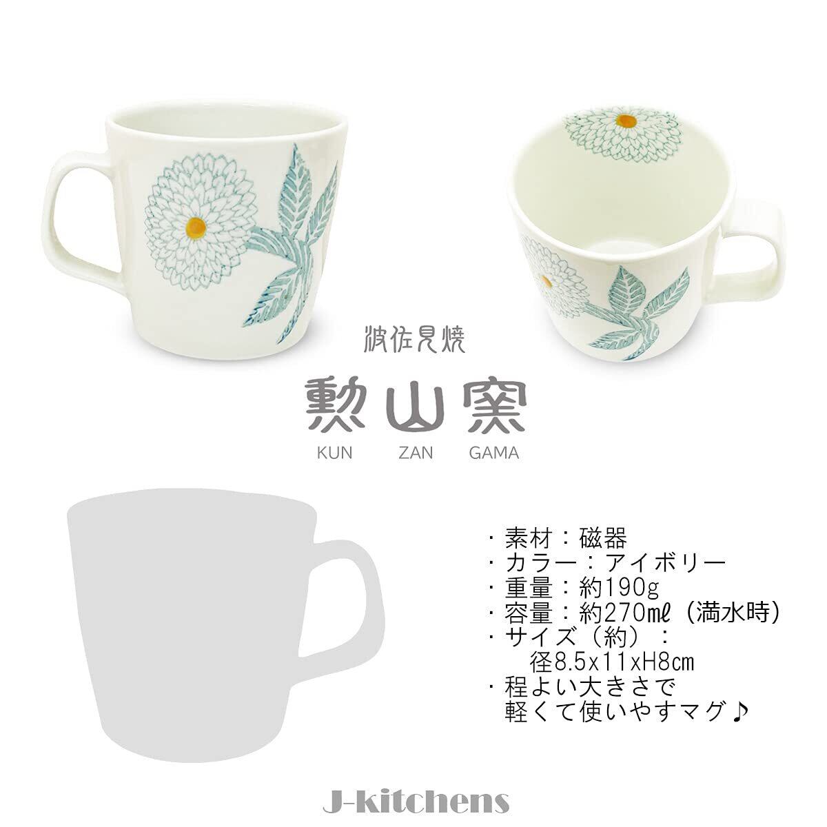 J-kitchens 勲山窯 くらわんか 茶碗 10.8cm マグカップ 270ml セット 電子レンジ対応 波佐見焼 日本製 ダリア ライト ブルー