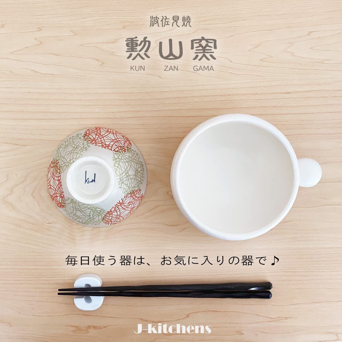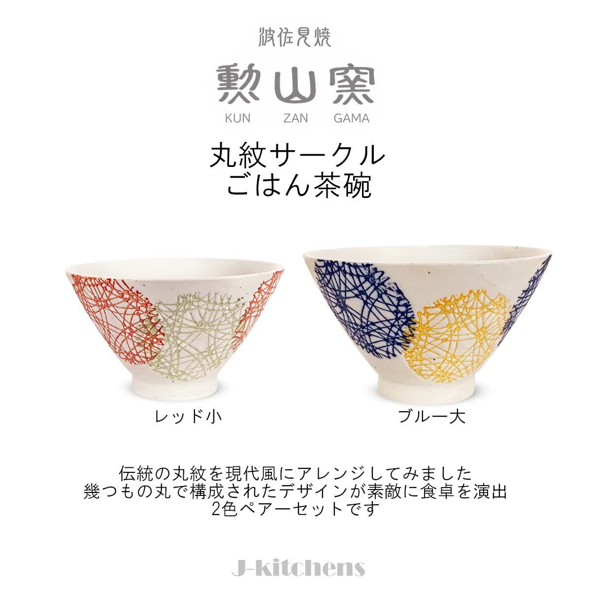 J-kitchens 勲山窯 ペア 茶碗 セット直径 11.5cm & 12.6cm 丸紋 サークル 大 小 波佐見焼 日本製