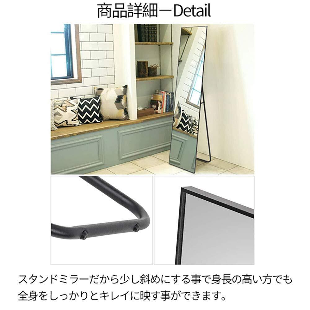 ミルオ君の鏡工房 全身鏡 姿見 スタンドミラー 壁掛けも対応 アルミフレーム 飛散防止 スタイリッシュ ウォールミラー インテリア 144x32cm (ブラック)