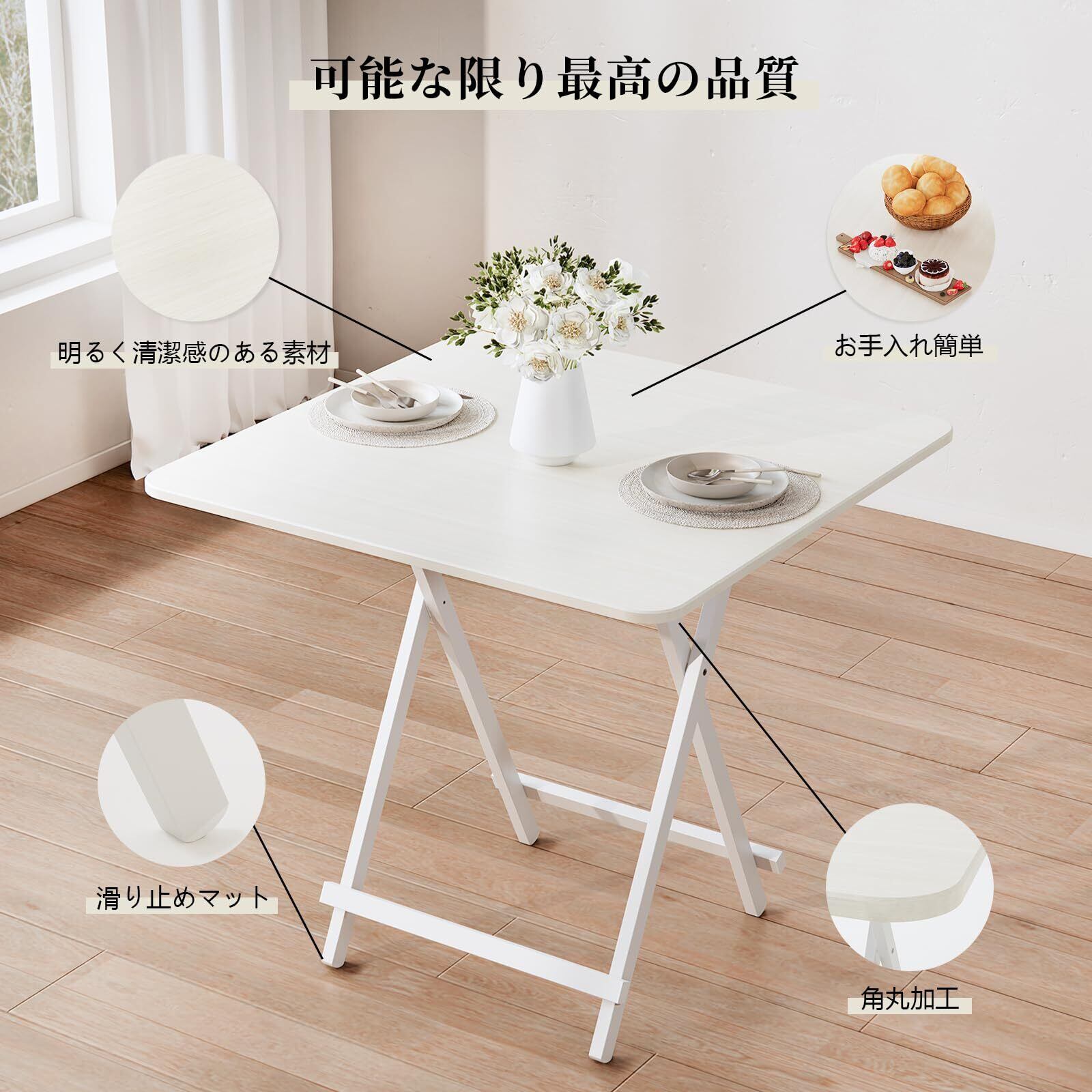 テーブル ダイニングテーブル 折畳みテーブル 幅80×奥行80×高さ74cm 省スペース カフェテーブル コンパクト 食卓 作業台 一人暮らし キッチン アウトドア キャンプ 組み立て不要 木目調 おしゃれ家具