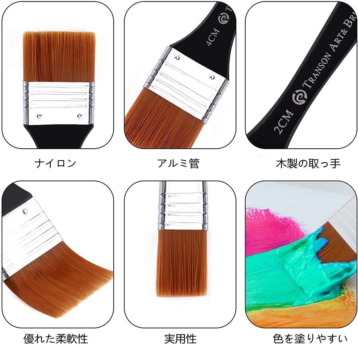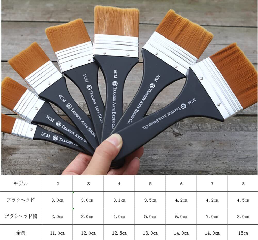商品仕様:平型筆7本セット,異なるサイズ:2cm、3cm、4cm、5cm、6cm、7cm、8cm。