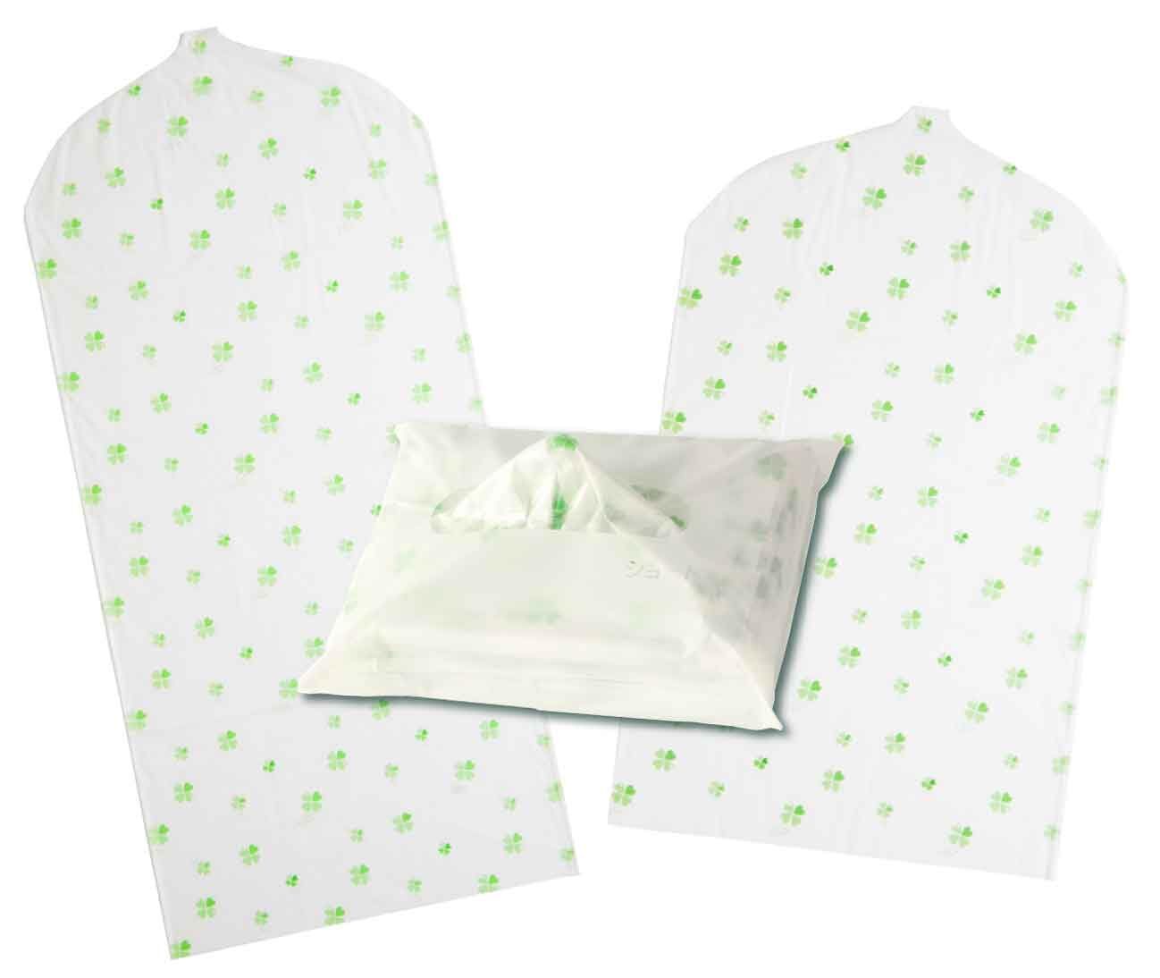 衣類カバー 洋服カバー 衣替え 不織布 クローバー柄 50枚セット (ショート40枚・ロング10枚) 日本製 片面不織布 片面ビニール 通気性 1枚ずつ取り出し可能 ティッシュ式 大容量 衣替え [(株)フォーラル] | BASE SHOP