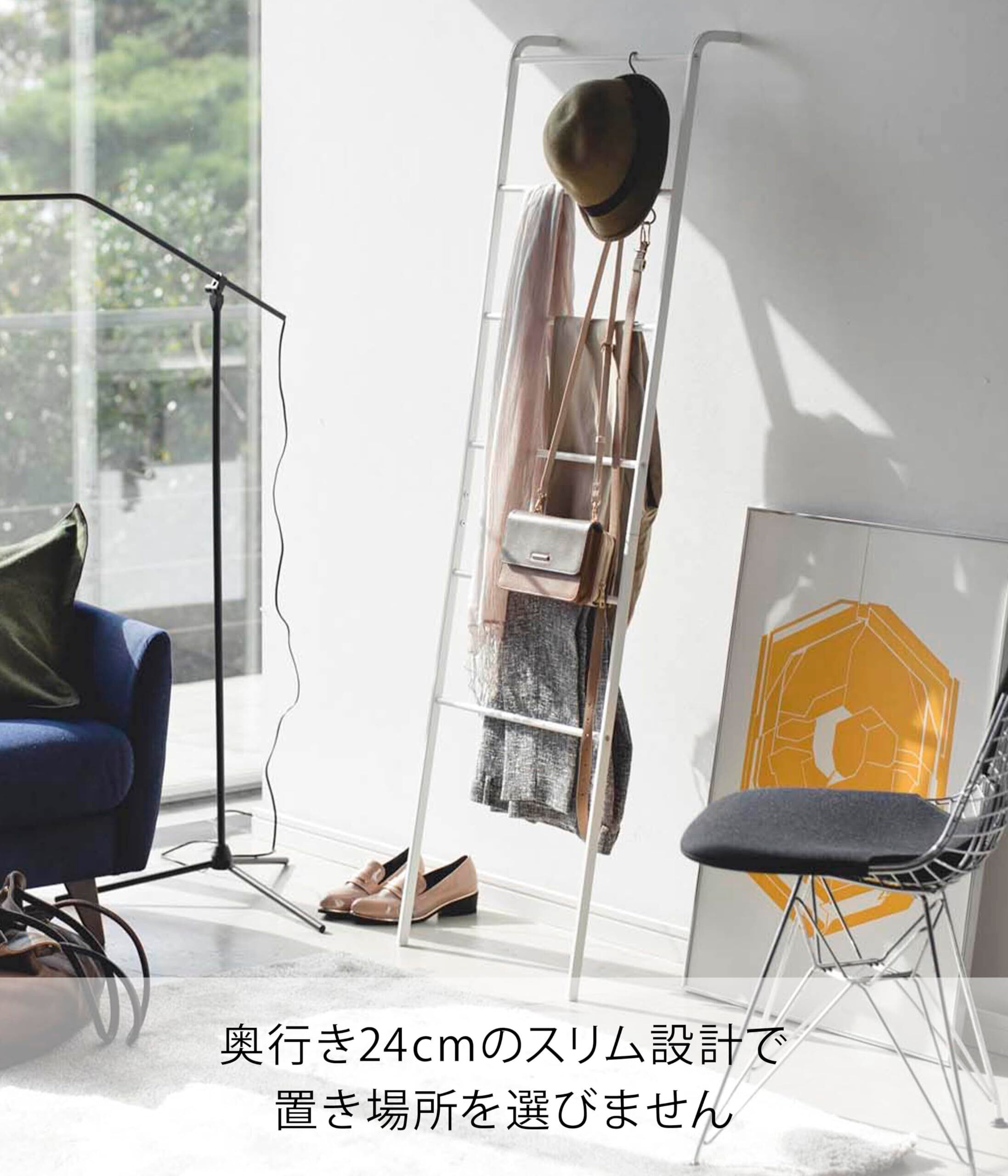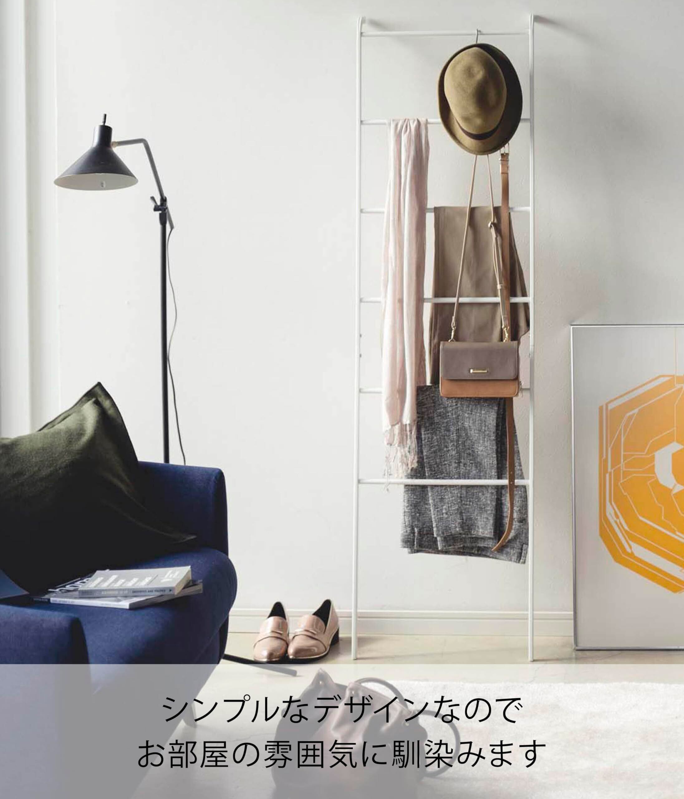 山崎実業 立て掛け収納ラック ハンガーラック はしご ラダーハンガー フレーム ホワイト 3963