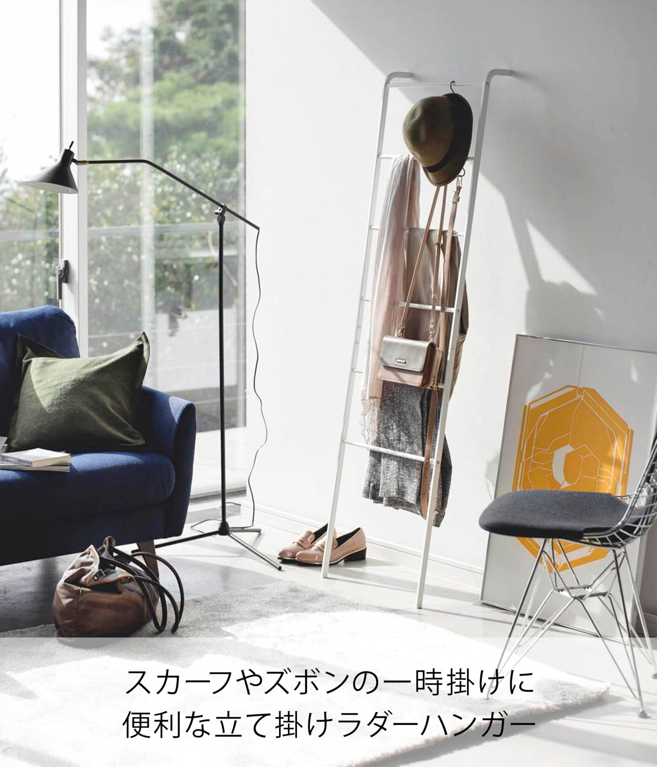 スカーフやズボンの一時掛けにも便利な立て掛けラダーハンガー