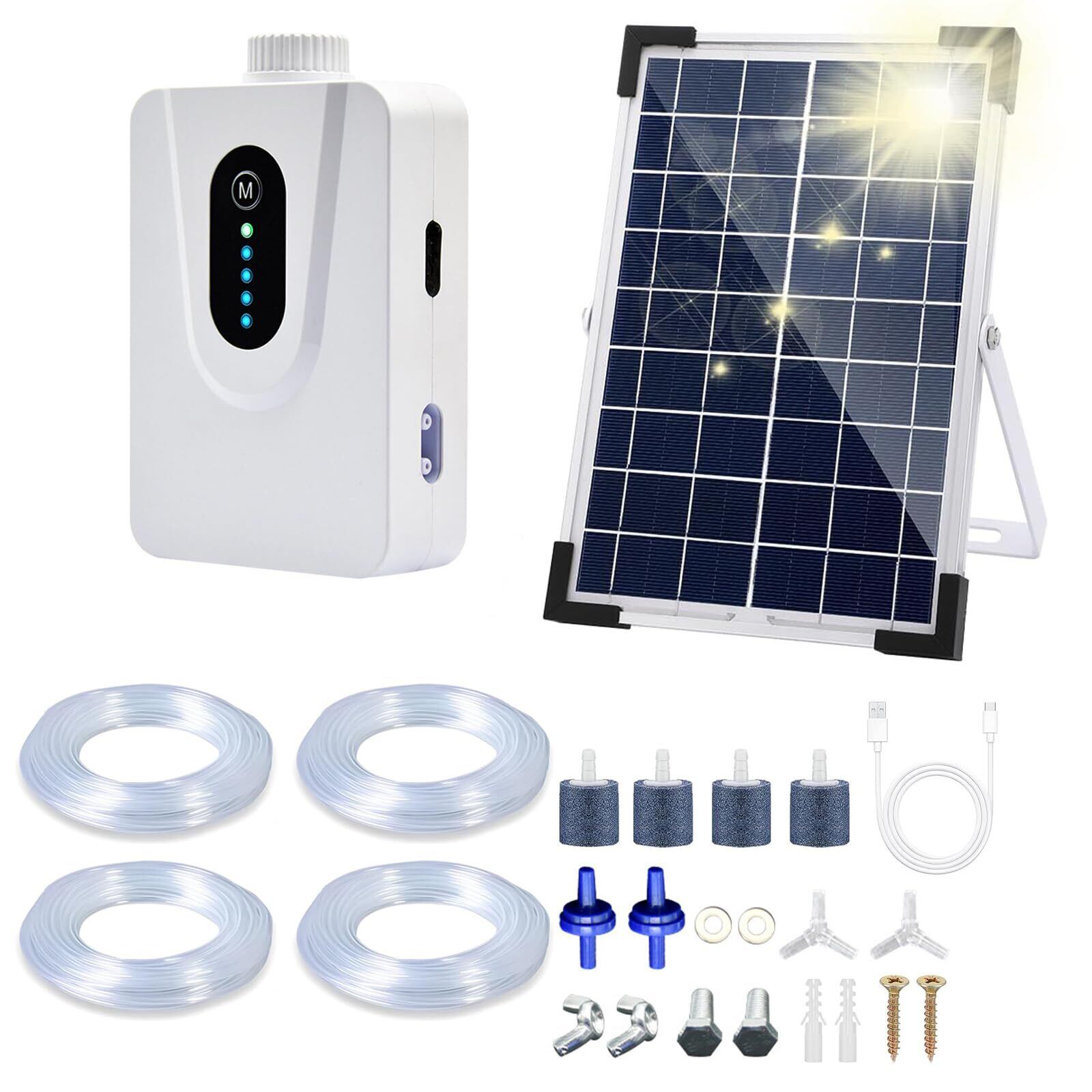 ZHHMl ソーラーエアポンプ 2.5L/min 水槽用エアポンプ 静音設計5w 省電力動作 防水 屋外 エアーポンプの風量調節が可能 池/室内水族/花園池に使用(エアストーン、逆止弁、ホース、付属) | BASE SHOP