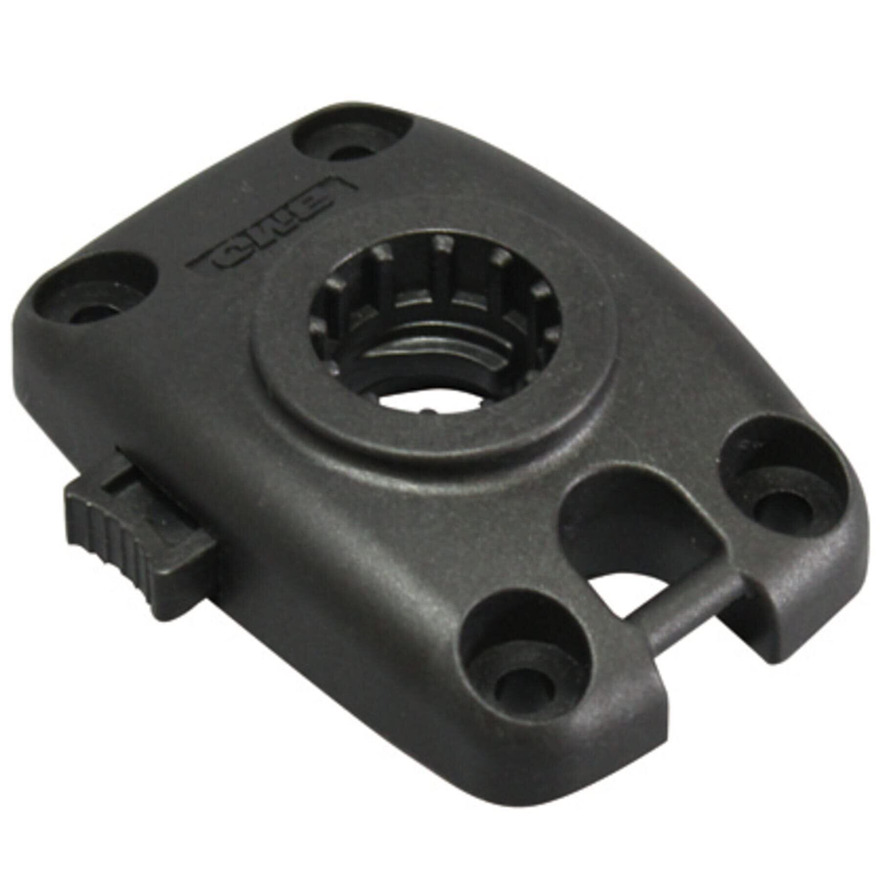 ネジで取り付けるタイプの最もスタンダードな取付ベースです。取付面の邪魔にならない薄型設計で、アタッチメントをがっちり固定できるロック付。ロックボタンを押すだけでアタッチメントの抜き差しが簡単に行えます。