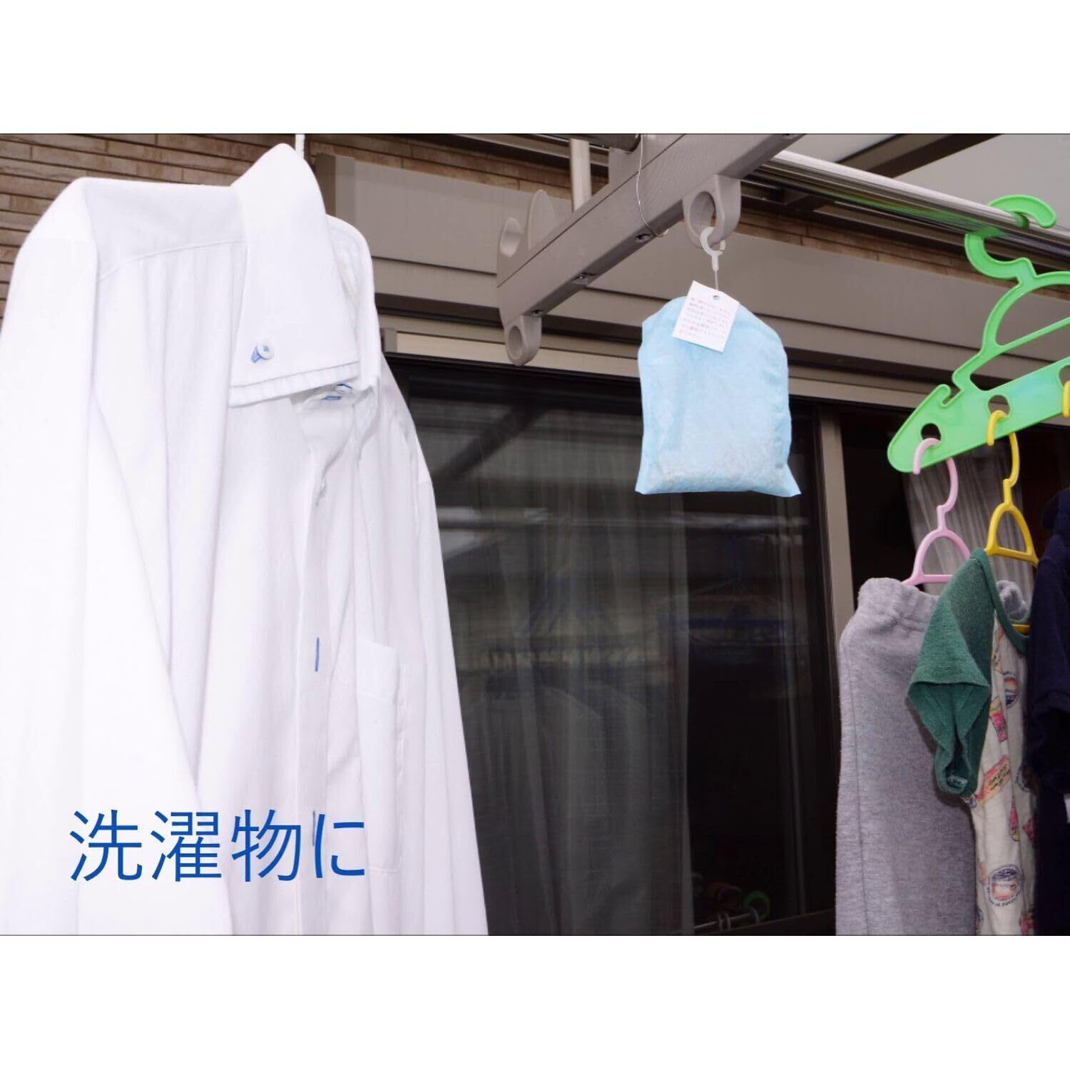 【使用方法】 ●スタンドパックから本品を取り出す。(小袋は破らずにご使用下さい) ●1m程度の間隔で洗濯バサミ等にぶらさげる。 ●使用後はスタンドパックに戻しチャックを閉めて保管してください。
