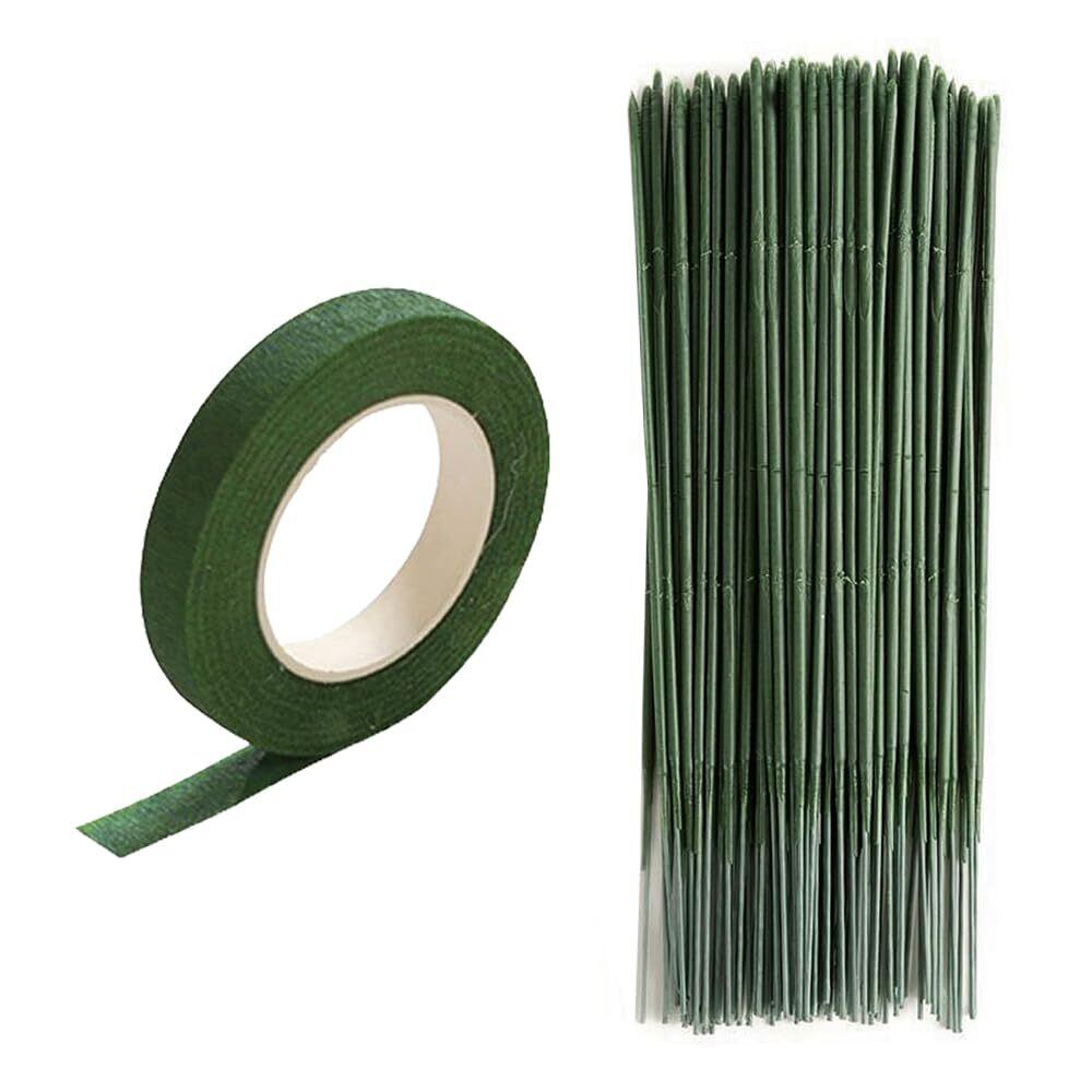 造花セット フローラテープ 1巻 地巻ワイヤー 50本 ダークグリーン 造花テープ フラワーアレンジメントキット 手芸 DIY