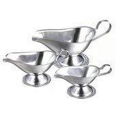 ステンレス製のおしゃれなソースポットとレードルのセットです。