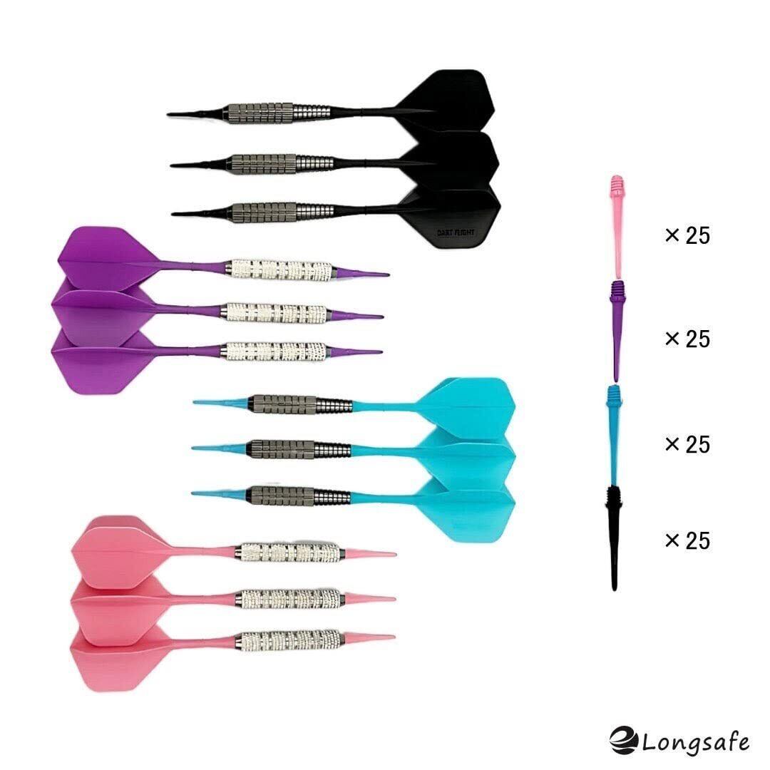 内容品:ダーツバレル*12個,フライトシャフト*12個(4色),チップ*100個(4色25個)
