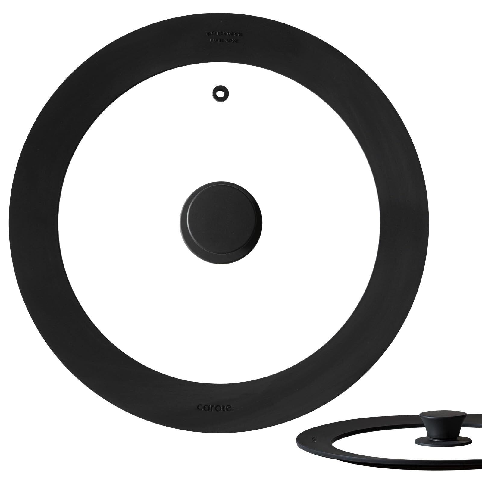 CAROTE カローテ 鍋蓋 フライパンカバー24cm26cm28cm兼用 シリコーンリッド ガラス蓋 耐熱240度 オシャレで可愛い 省収納スペース 食洗器対応 ブラック 24cm-26cm-28cm-最新型 (黒, 24-26-28cm) | BASE SHOP