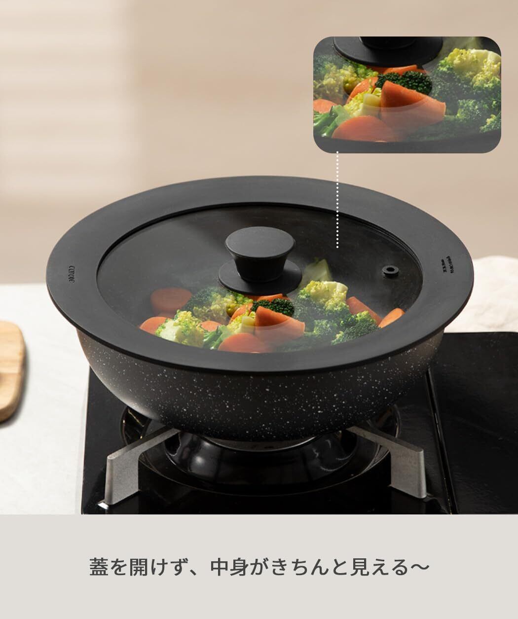 本製品には、通気孔付きの鍋蓋と通気孔なしの鍋蓋がございますが、在庫状況によりランダムでの発送となります。どちらのタイプが届くか指定することはできませんので、予めご了承ください。