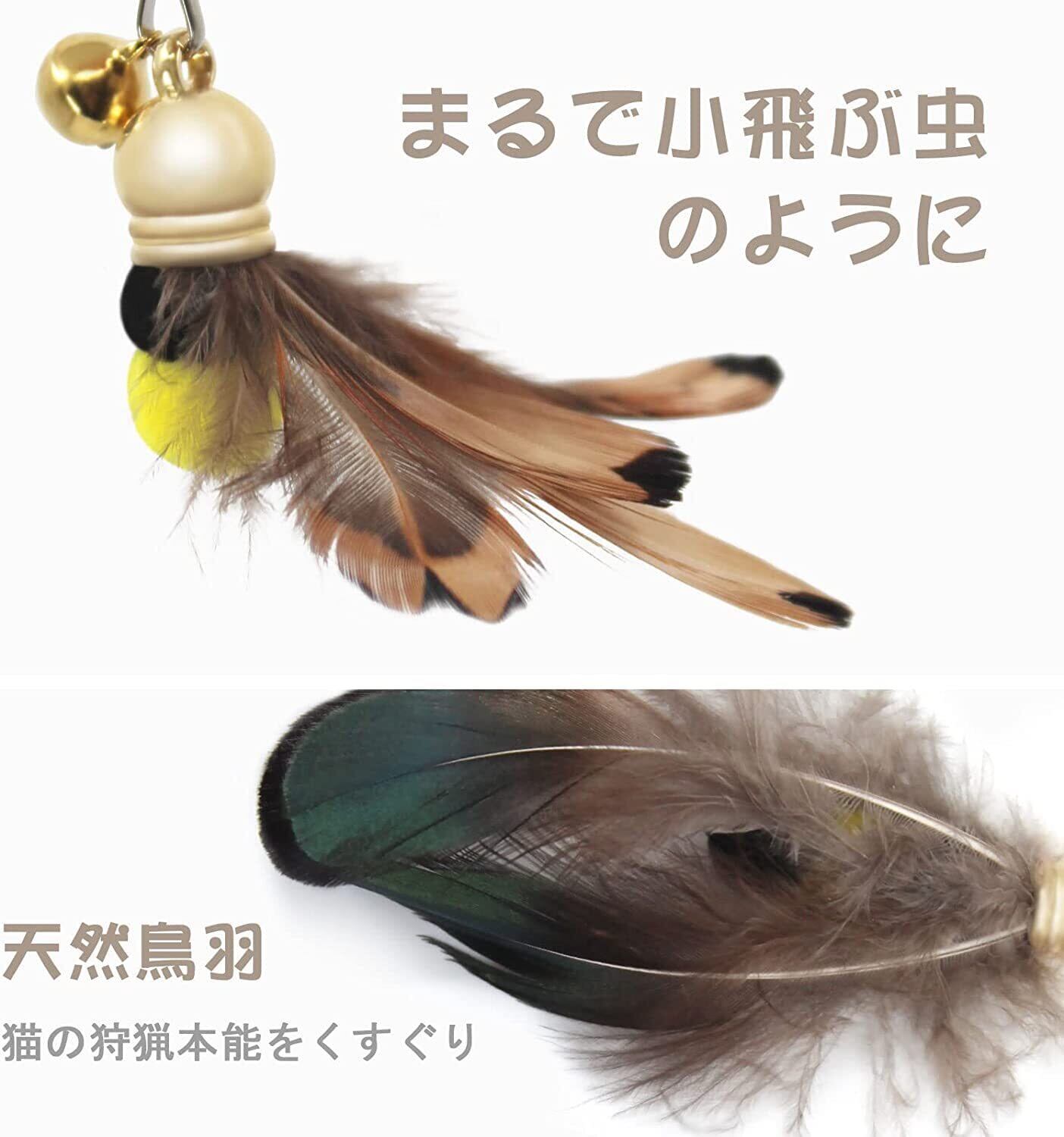 猫のおもちゃ:天然の羽で作った小飛ぶ虫*8、猫ちゃんの好みによって、じゃらしを取り替えることができます。愛猫はきっと夢中になるはずです。