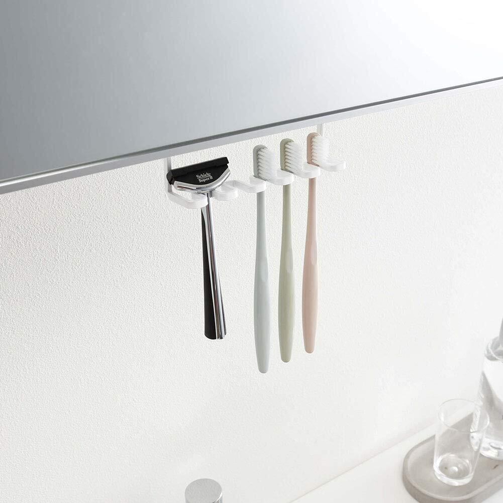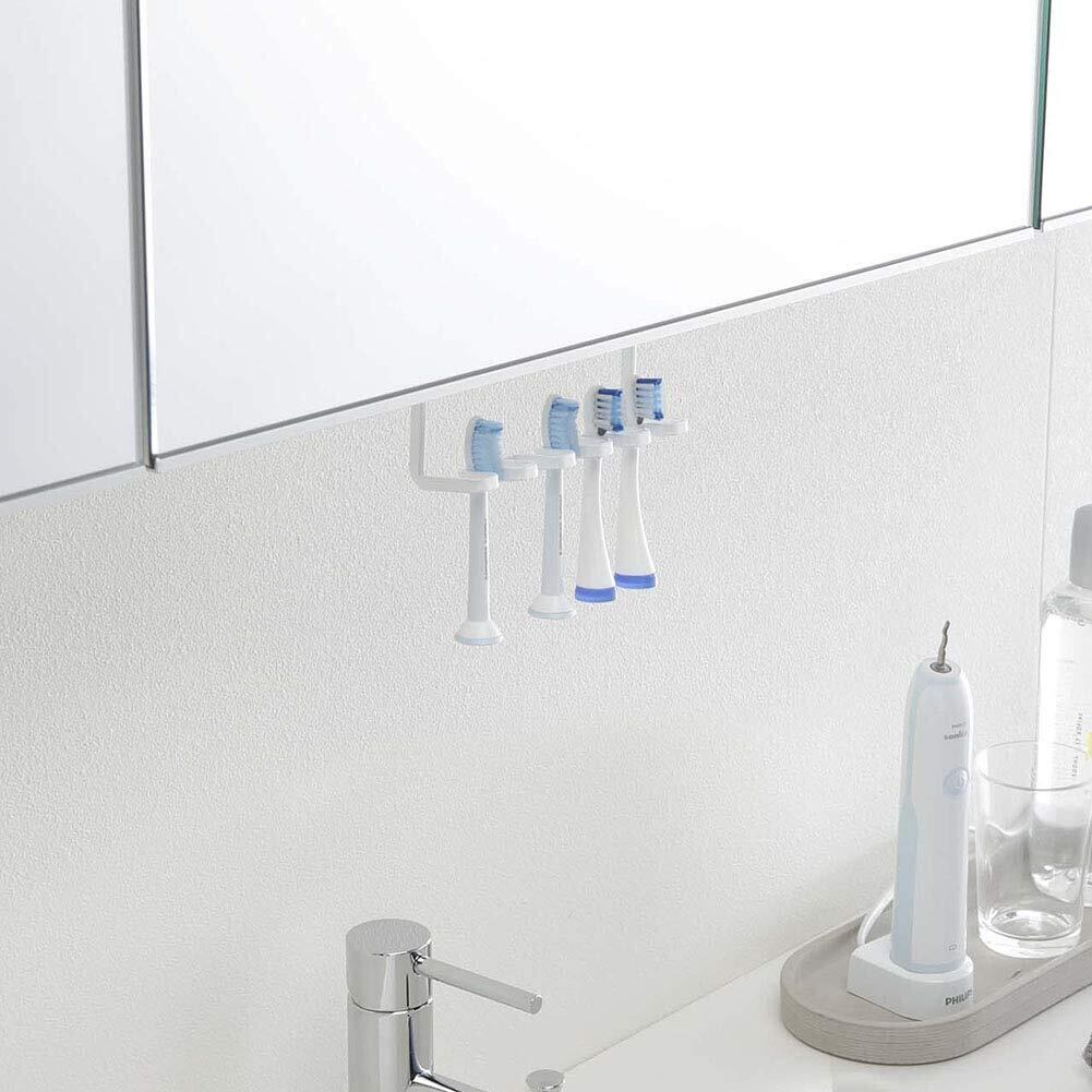 洗面所の吊り戸棚に浮かせて取り付けられる歯ブラシホルダー!