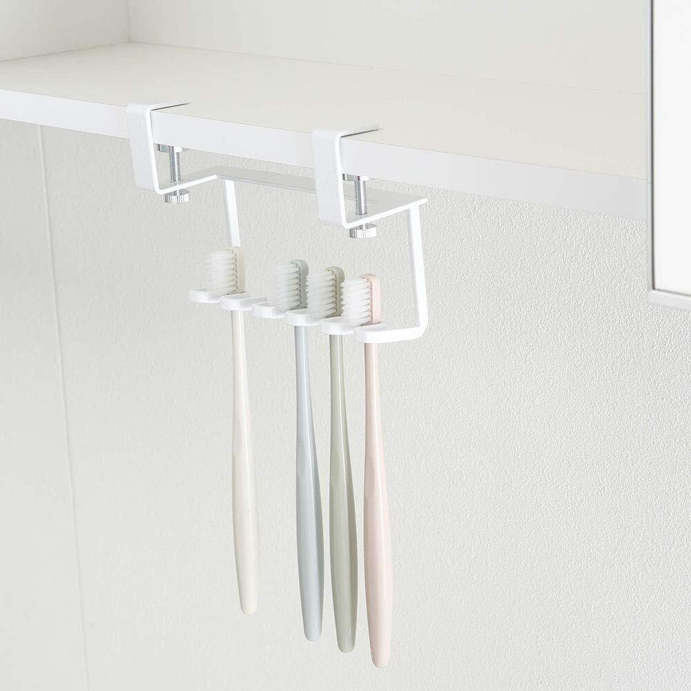 山崎実業(Yamazaki) 洗面戸棚下歯ブラシホルダー ホワイト 約W14XD5XH10cm タワー 浮かせて収納 髭剃り収納 歯ブラシスタンド 5006
