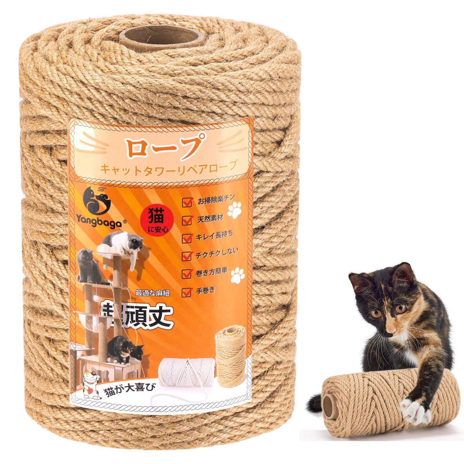 麻ロープ6mmYangbaga麻縄 猫 爪とぎ 麻紐 ジュートロープ 爪とぎ 爪を磨き キャットタワー用 キャットクライミングフレームの修理の代替品 手作り DIY 園芸 ボールが 含まれています(100M) | BASE SHOP