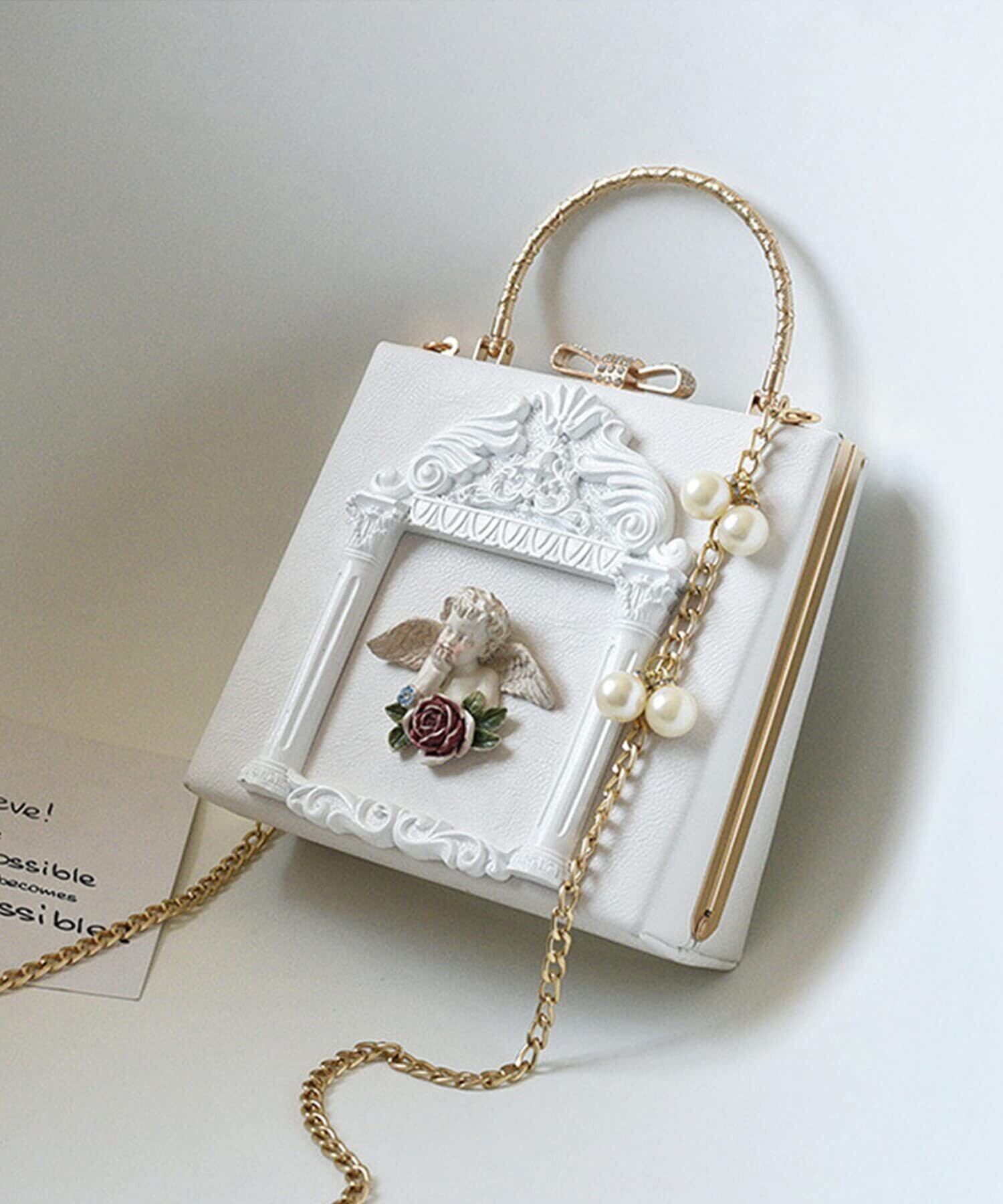 [アイモハ] チェーンバッグ ミニ 斜めかけ ハンドバッグ ショルダーバッグ レディース フォーマルバッグ エンジェル