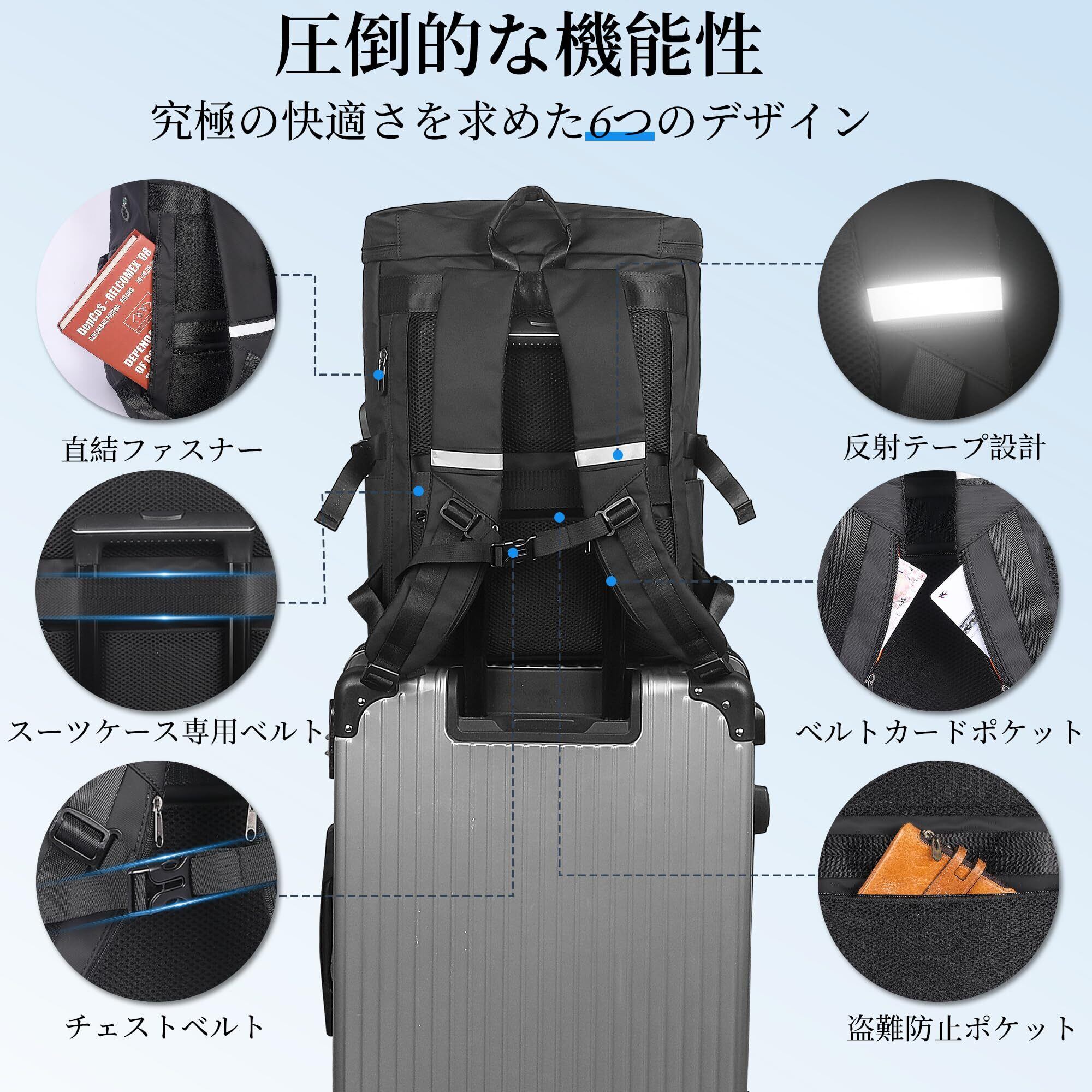 【BOX立体構造|キャリーオン機能】バックパックは、美しさと機能性を兼ね備えた今人気のBOX構造、スクエア型リュックです。スキーヤーやキャンパー、アウトドア愛好家にも愛用されています。ビジネスリュックはキャリーオン機能搭載し、背面の荷物専用ベルトがビジネスリュックをスーツケースーに固定可能で簡単に移動することができ、ずれ落ちる心配がなくなります。また、ショルダーにカードポケットがあり、改札も止まらずに通過できます。男女問わずにお使いいただけます、持ち歩く便利で、出張や旅行など幅広く使用できます。