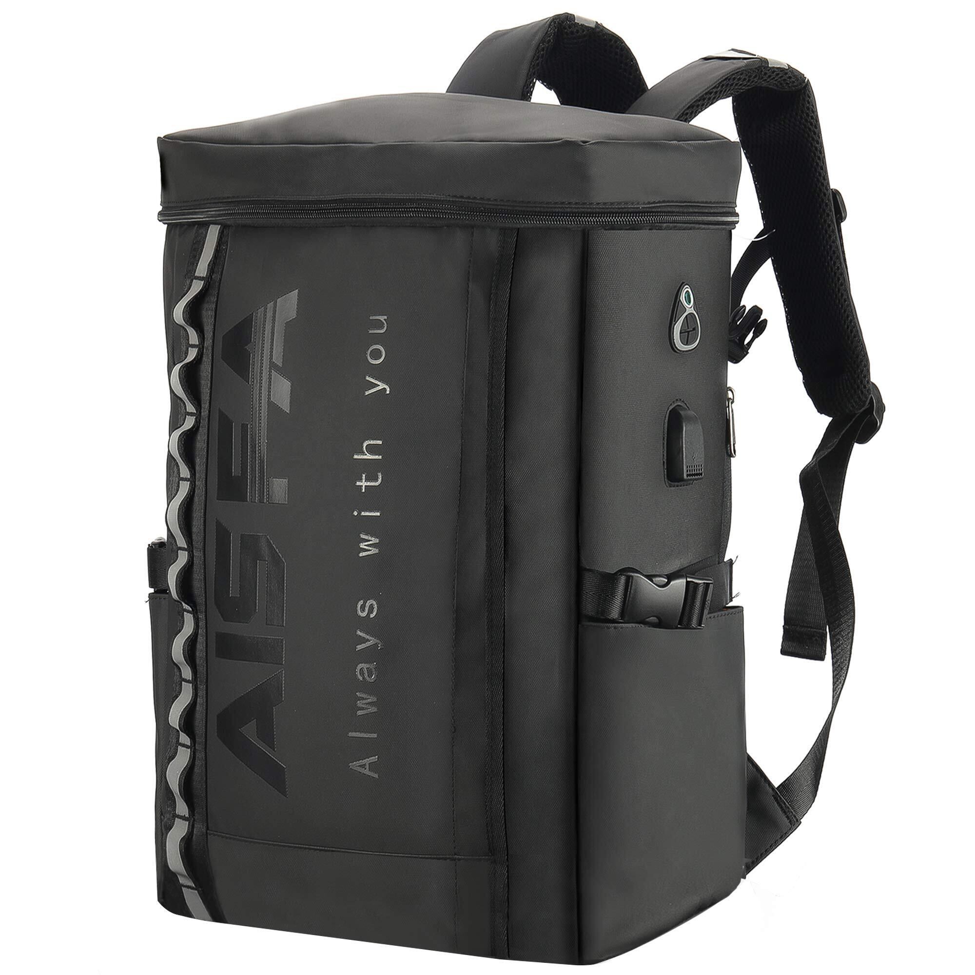 [AISFA] リュック メンズ リュックサック スクエア バックパック 防水17インチ PC ビジネス ラップトップバック USB充電ポート付き 30L アウトドア旅行防災 通勤 靴/弁当収納