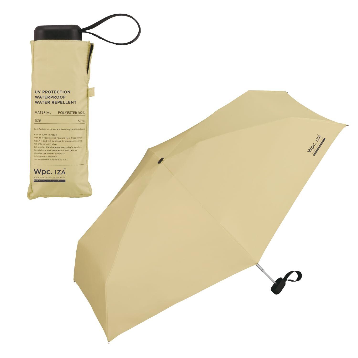 Wpc. IZA 男の晴雨兼用傘【コンパクト】COMPACT ベージュ [遮光率100%・UVカット率100%・UPF50+・遮熱] 日傘 メンズ イーザ 男性 折りたたみ傘 53cm 小さい おしゃれ シンプル 無地 ZA003-911-102