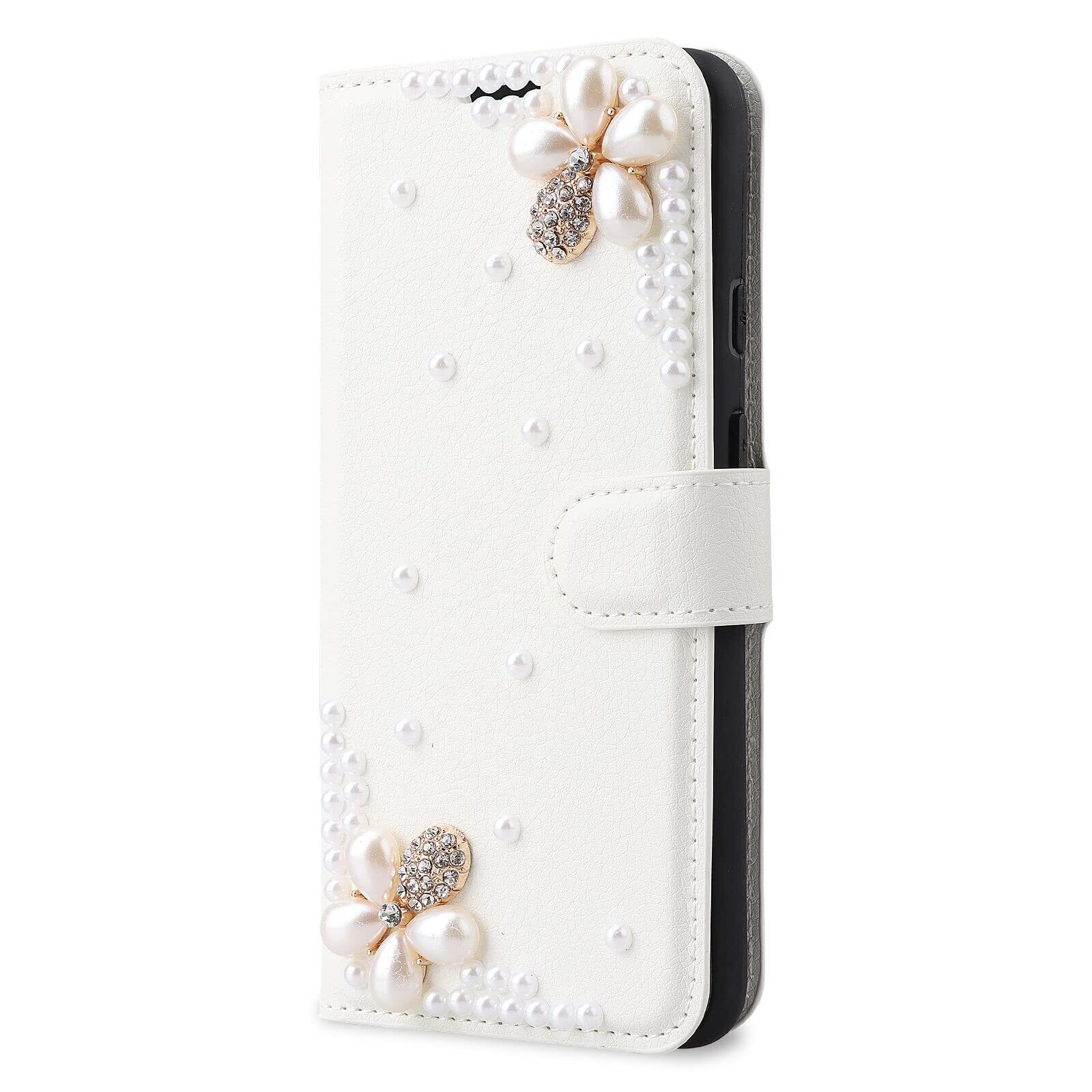 Galaxy A53 5G ケース PUレザー 手帳型カバー ラインストーンデコ お花スタンド ケース カードスロット付 docomo ドコモ サムスン ギャラクシー A53 SC-53C 専用 A53 5g galaxy SCG15 ケース 手 ケース カバータッチペン プレゼント (Galaxy A53, パール花) | BASE SHOP