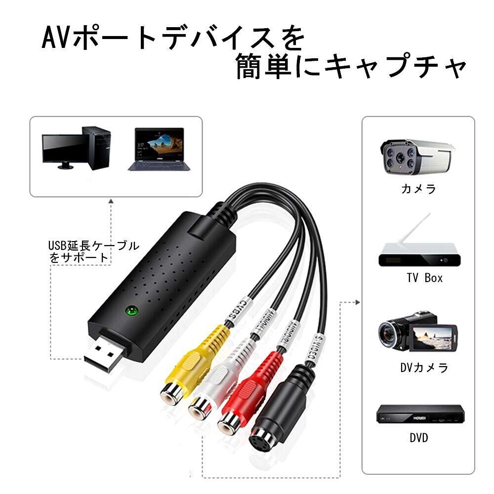 ビデオキャプチャーUSB2.0キャプチャーケーブル ビデオ DVD VHS ゲーム機 カメラ パソコン取り込み デジタル化DVD ダビング ビデオ テープ dvd パソコン取り込み Windows 2000 / XP/Vista/Win 7/8/8.1/10対応 dvd PC保存 vhs パソコン