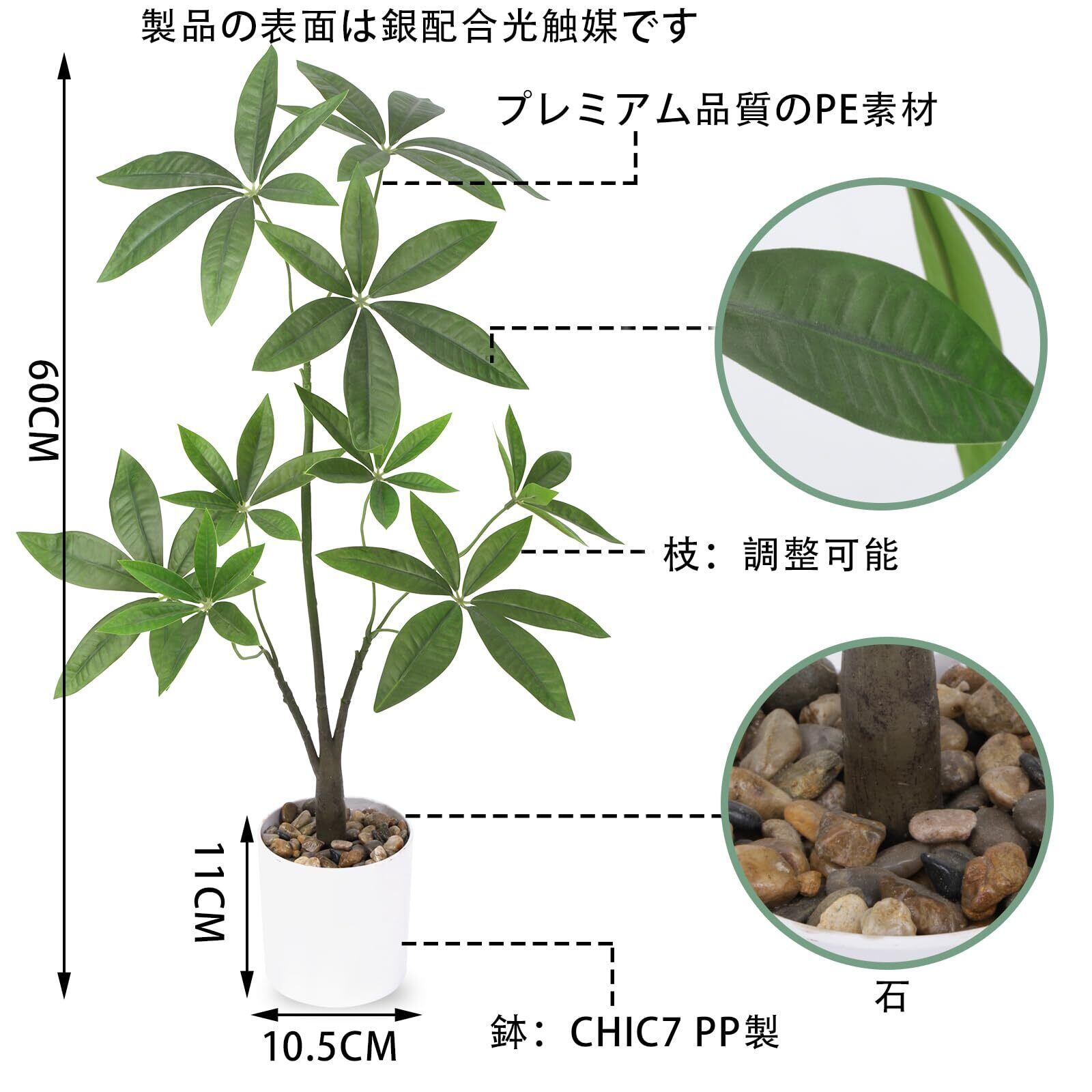 人工観葉植物 フェイクグリーン パキラ 高さ60cm 造花 観葉樹 光触媒 空気清浄 インテリア 飾り 世話いらず 水やり不要 オフィス ホーム デコレーション