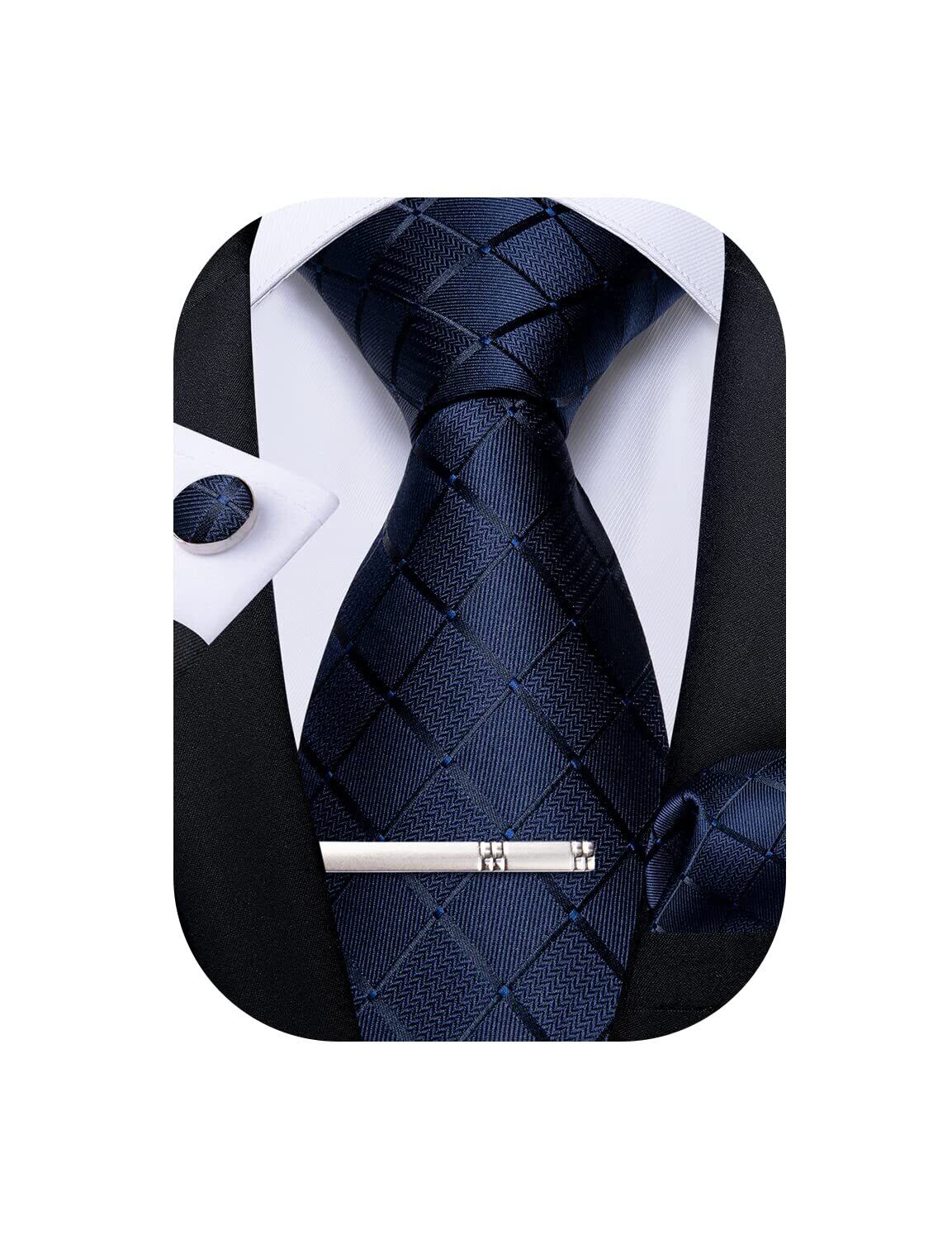 セット内容:ネクタイ(長さ150cm*大剣先幅8cm)、ポケットチーフ(23*23cm)、タイピン、カフスボタン、4点セットです。ストライプ、無地、フローラル、チェック柄などのパターンネクタイをご用意しており、スーツやシャツにピッタリマッチします。